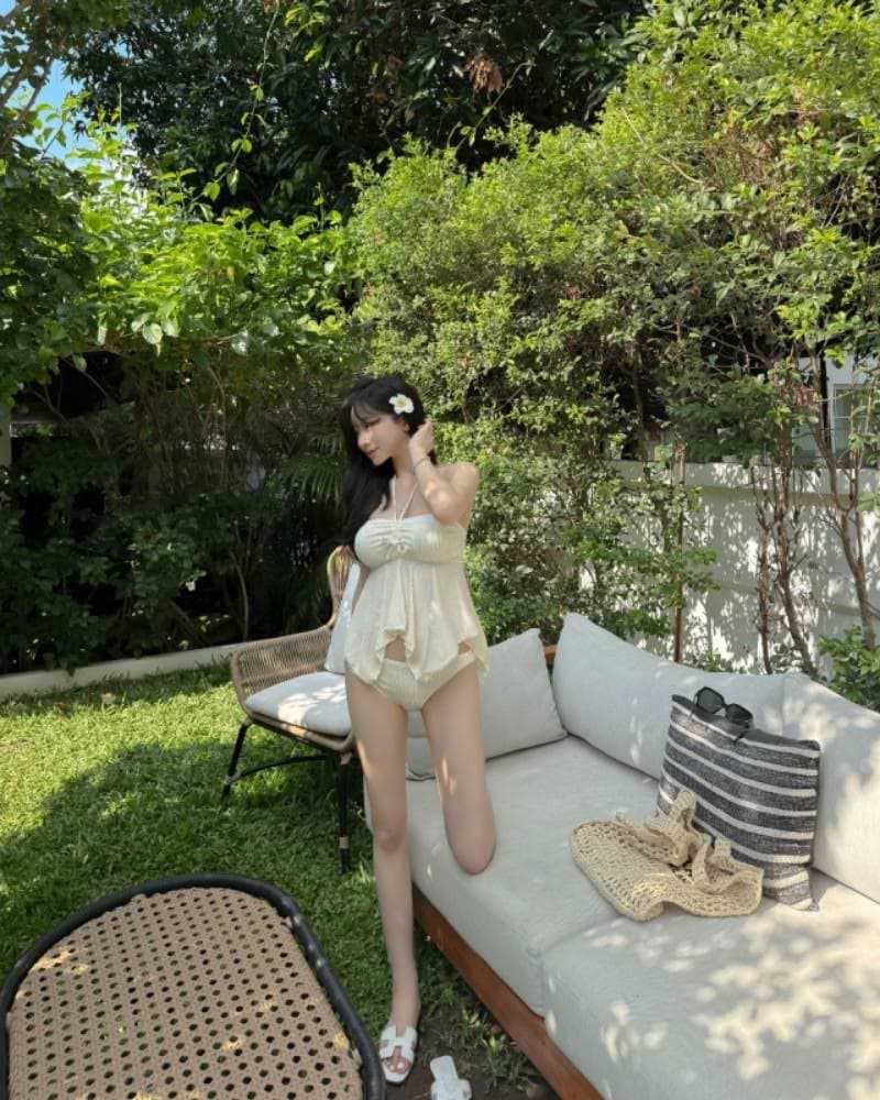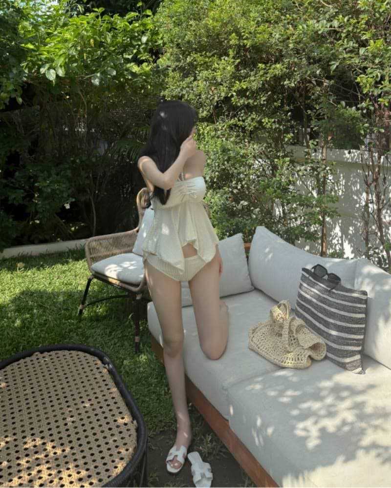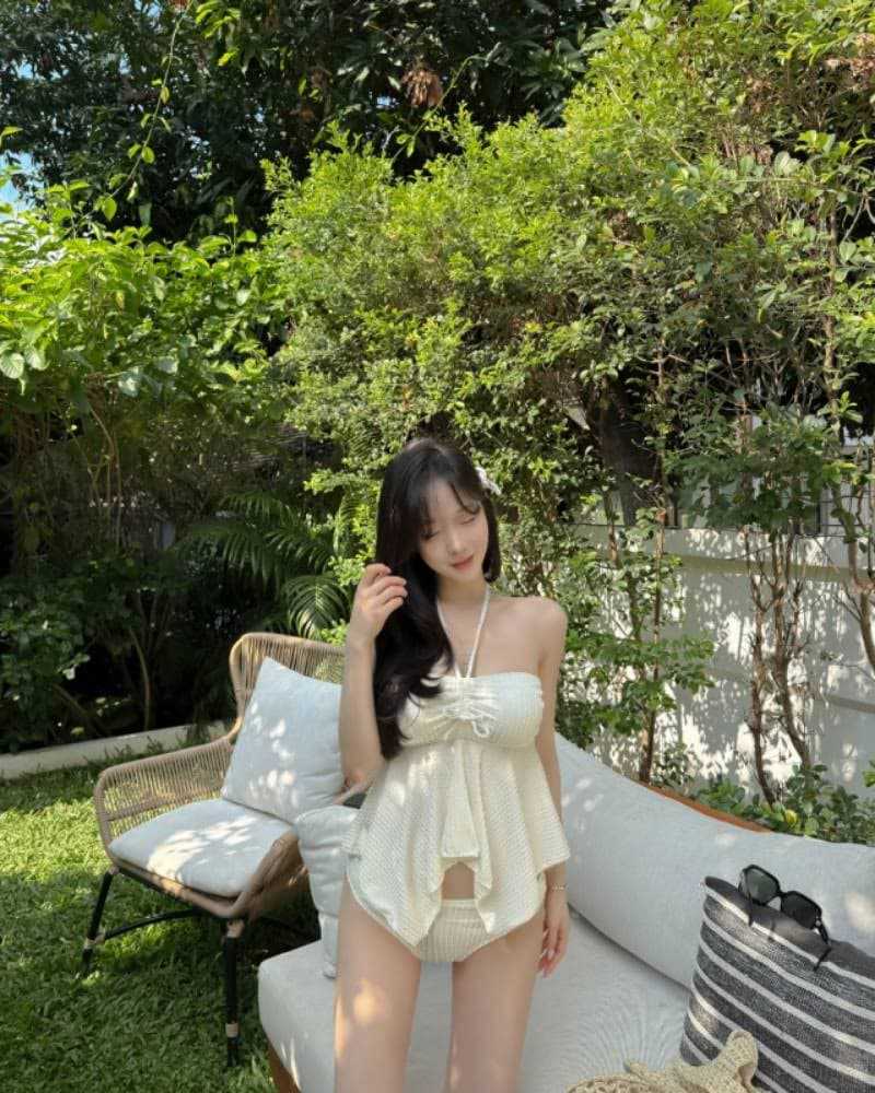 여성을 위한 화이트 홀터넥 스플릿 수영복, 새로운 스타일, 순수한 욕망, 살을 커버하고 슬리밍 삼각형 작은 가슴 비키니스토어 가기