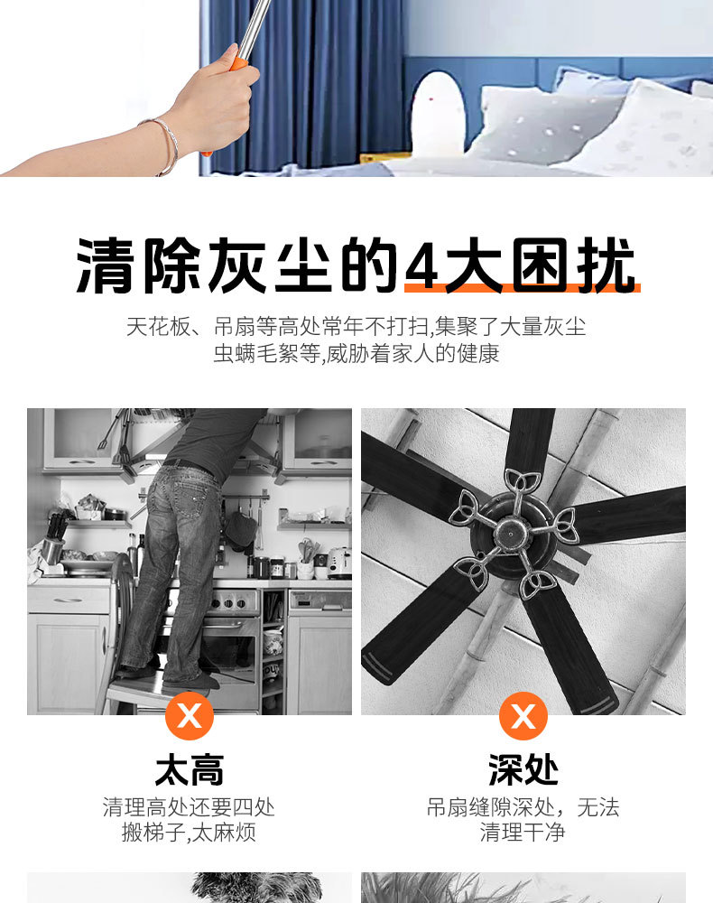 텔레스코픽 로드 천장 팬 브러시 먼지 제거 천장 청소 먼지 떨이 천장 팬 청소 먼지 떨이 브러시 원형 먼지 떨이