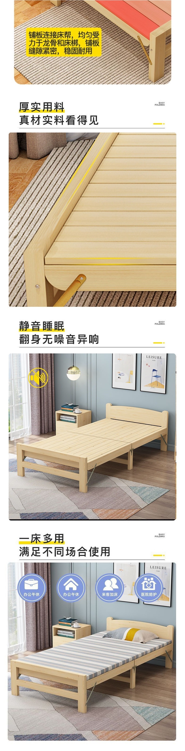 원목 접이식 침대 가정용 싱글 침대 1.2m 임대실 어린이 더블 침대 성인 낮잠 사무실 간이 침대