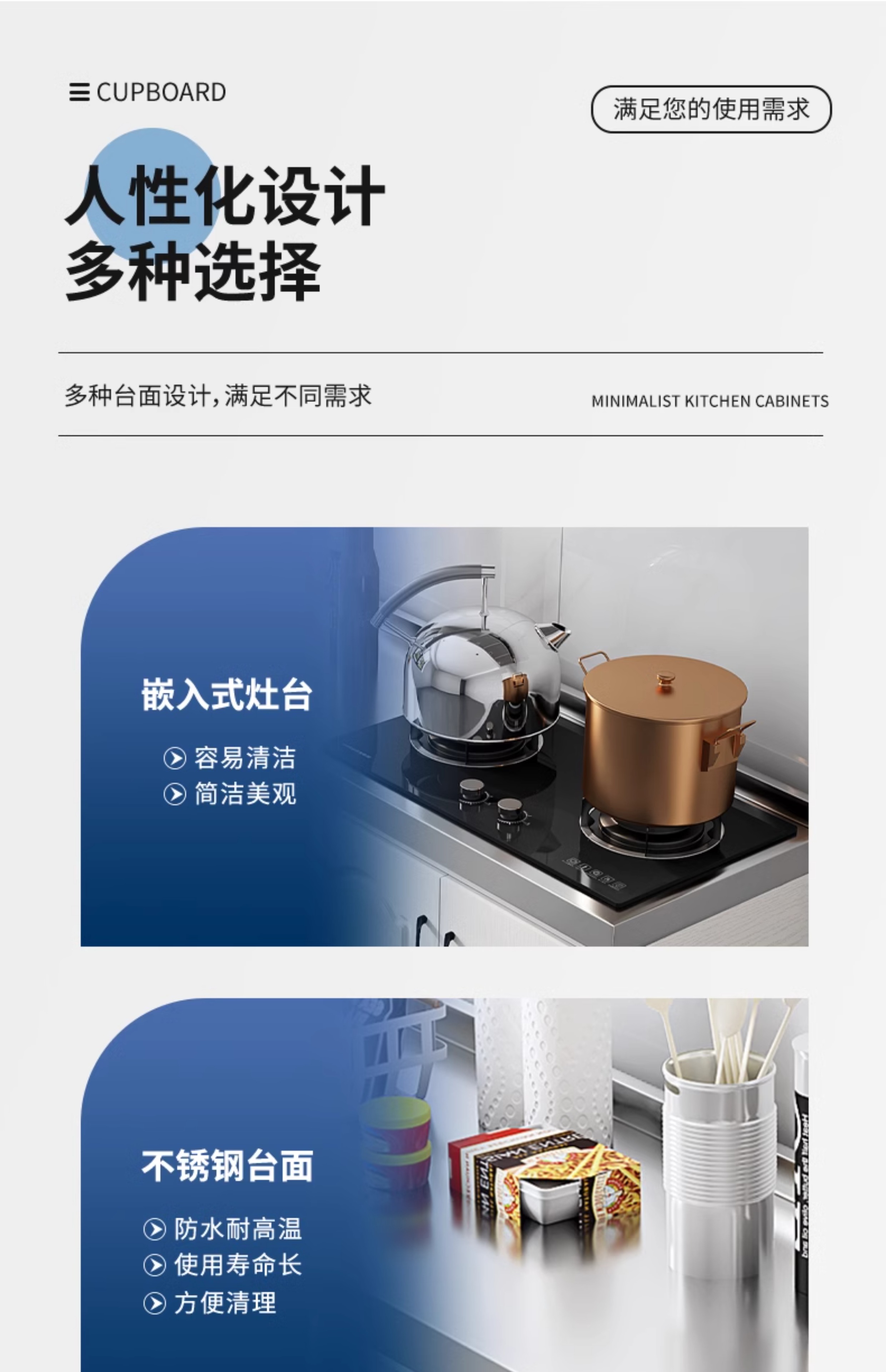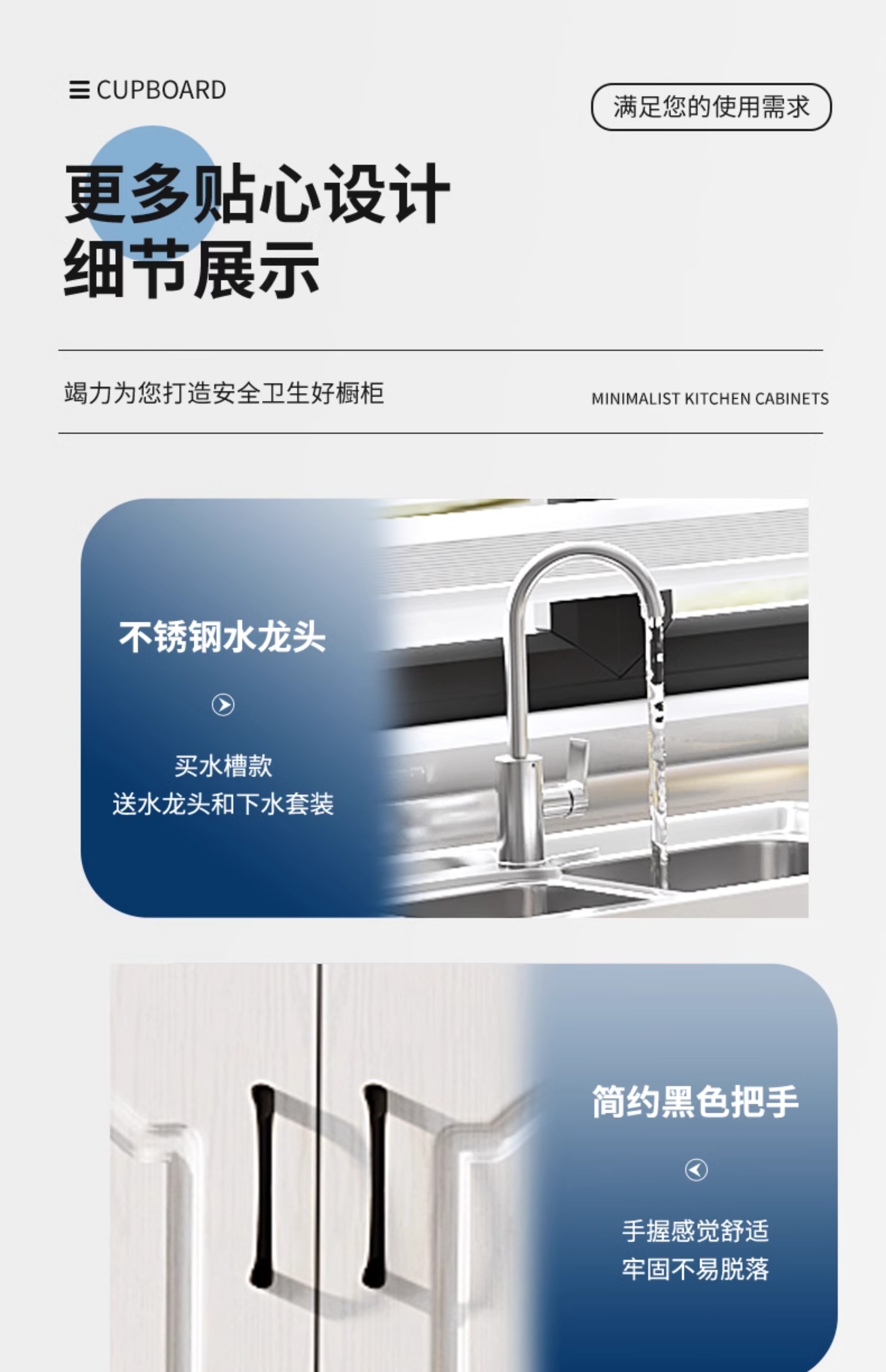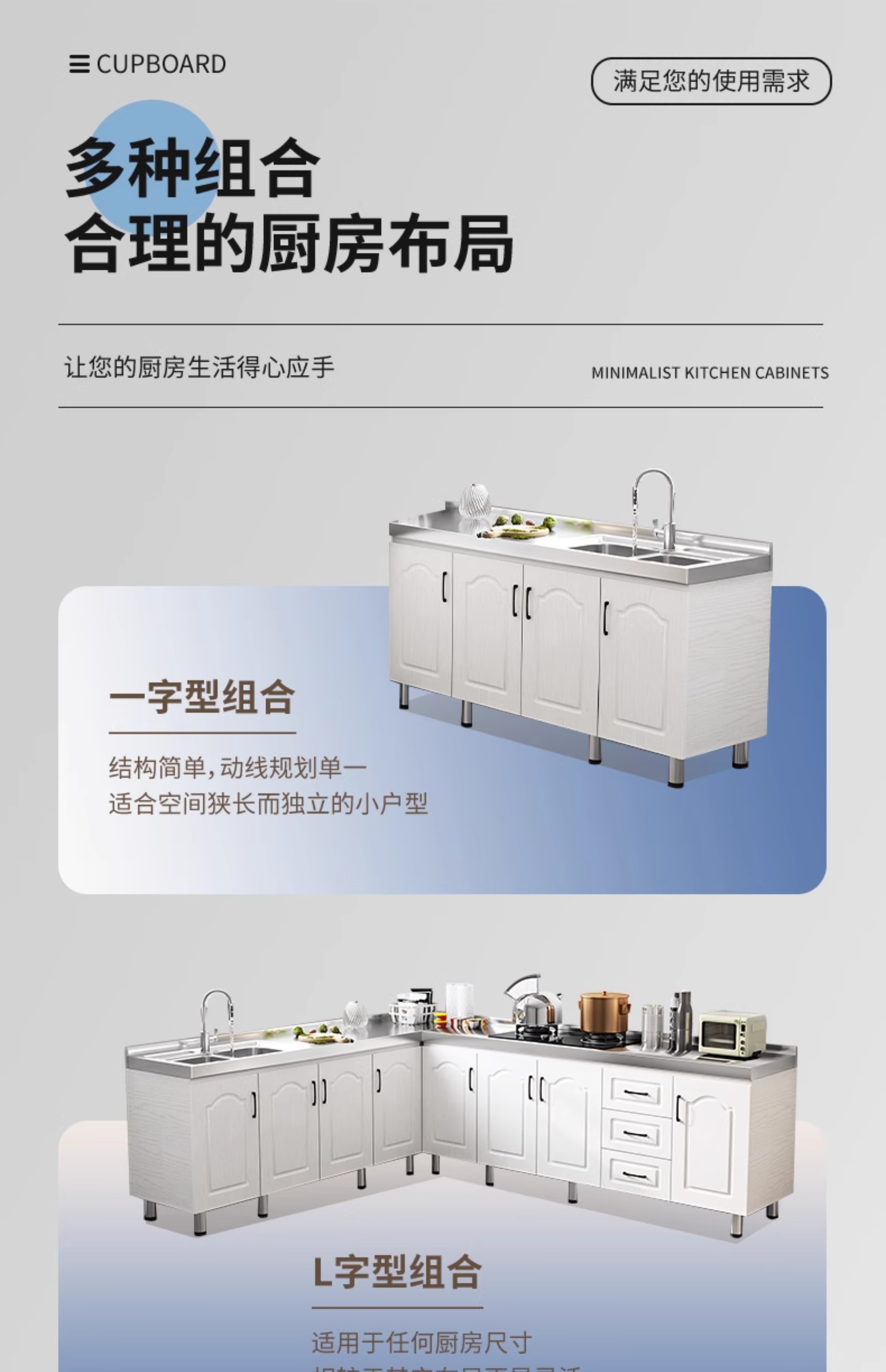 주방 캐비닛, 스토브 캐비닛, 일체형 농촌 임대 경제적 조립 스테인레스 스틸 가정용 싱크 캐비닛 간이 식기 캐비닛스토어 가기