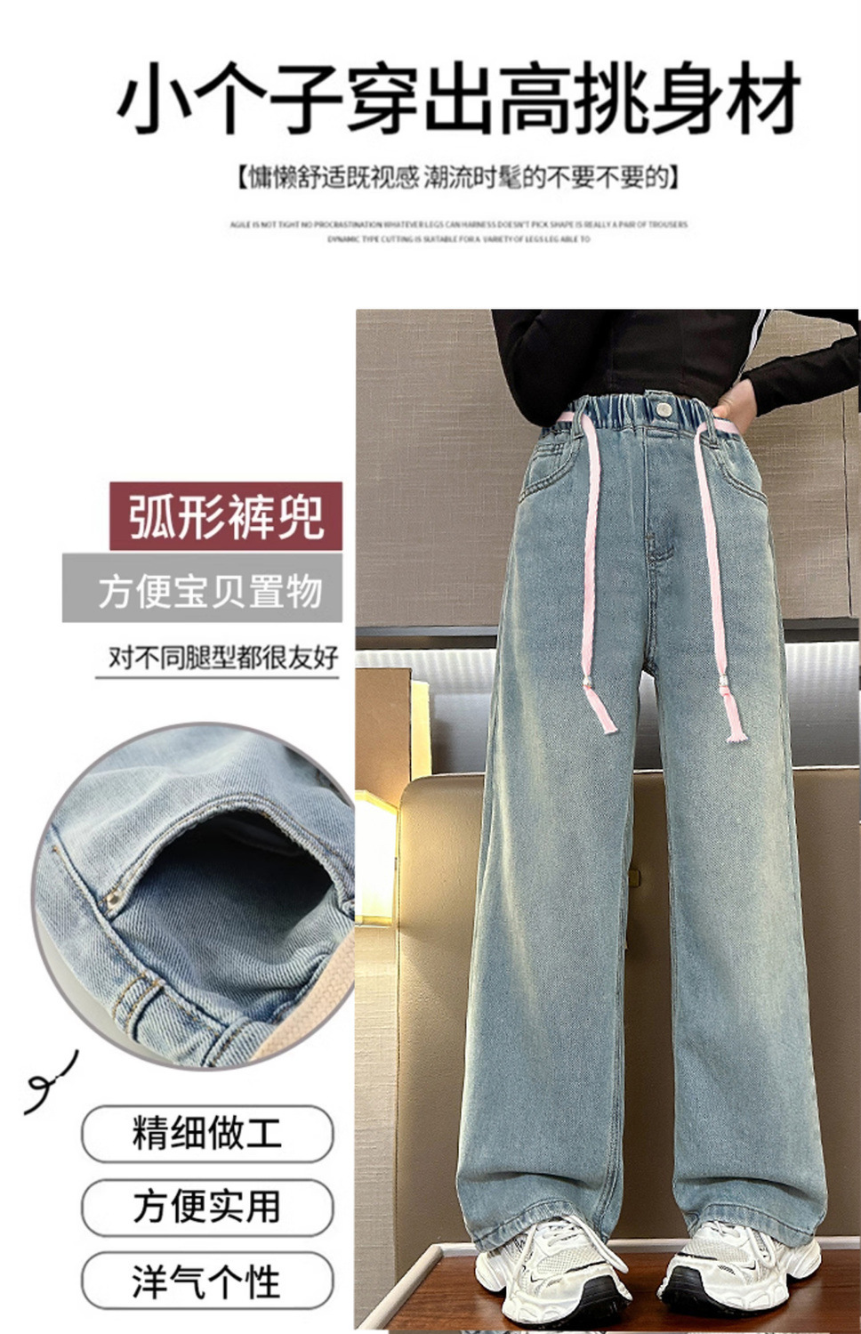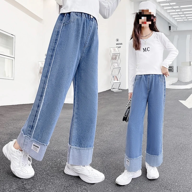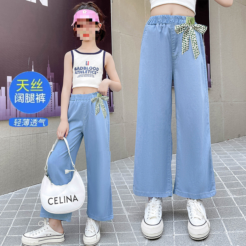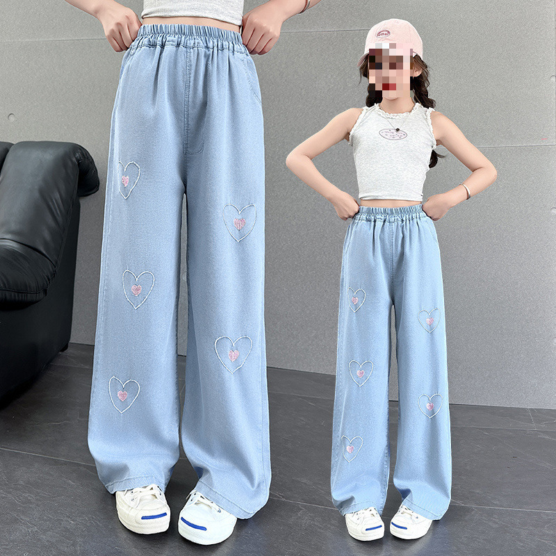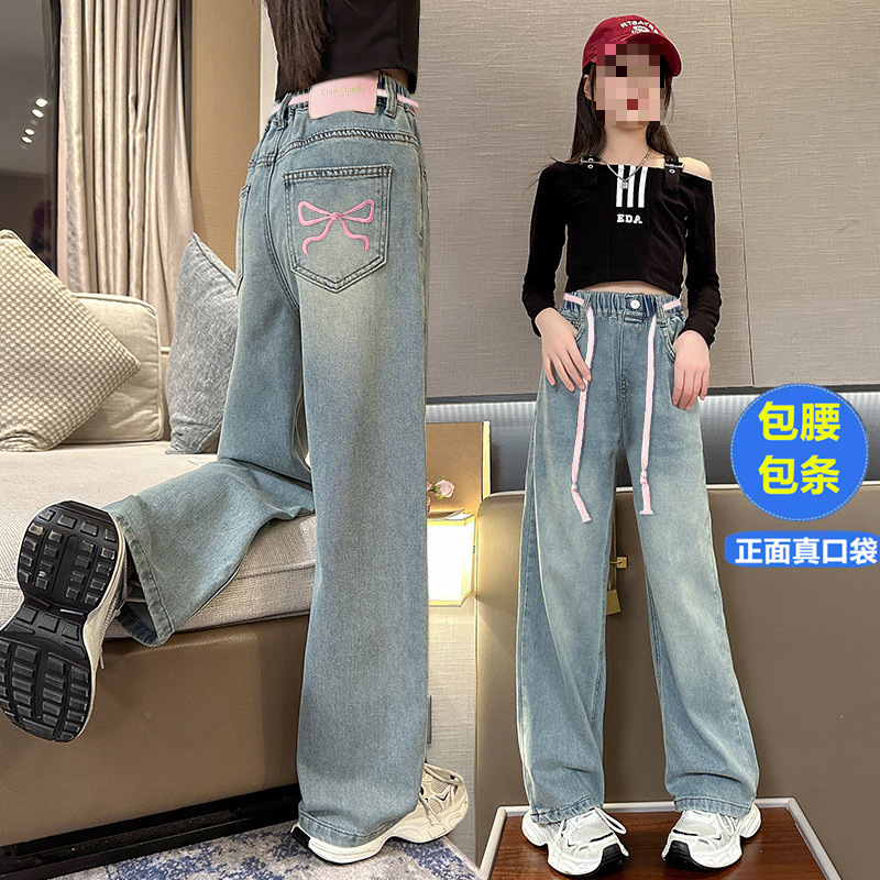 여아 청바지 2025 여름 얇은 중대형 여아 와이드 팬츠 캐주얼 루즈 아동 스트레이트 팬츠 여름스토어 가기