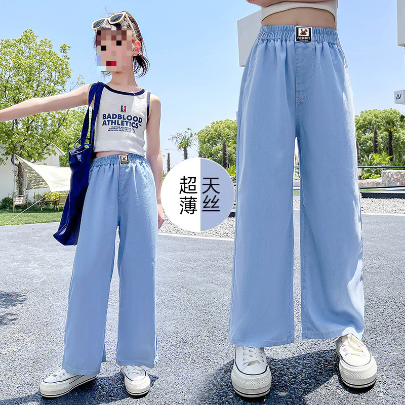 여아 청바지 2025 여름 얇은 중대형 여아 와이드 팬츠 캐주얼 루즈 아동 스트레이트 팬츠 여름