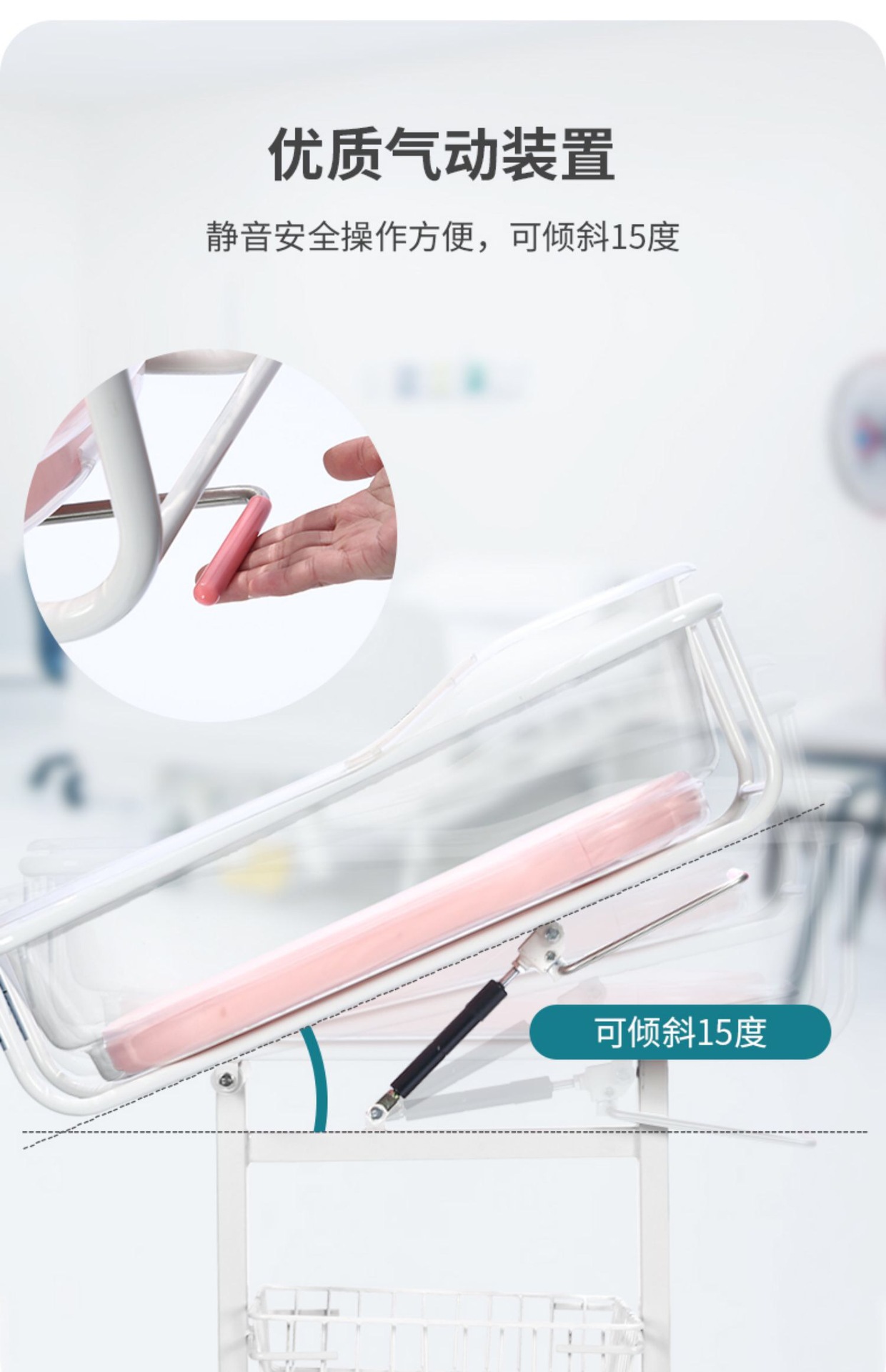 병원과 동일한 산후 센터 유아용 침대 이동식 및 기울기 가능 의료용 구토 방지 유모차 신생아 유모차