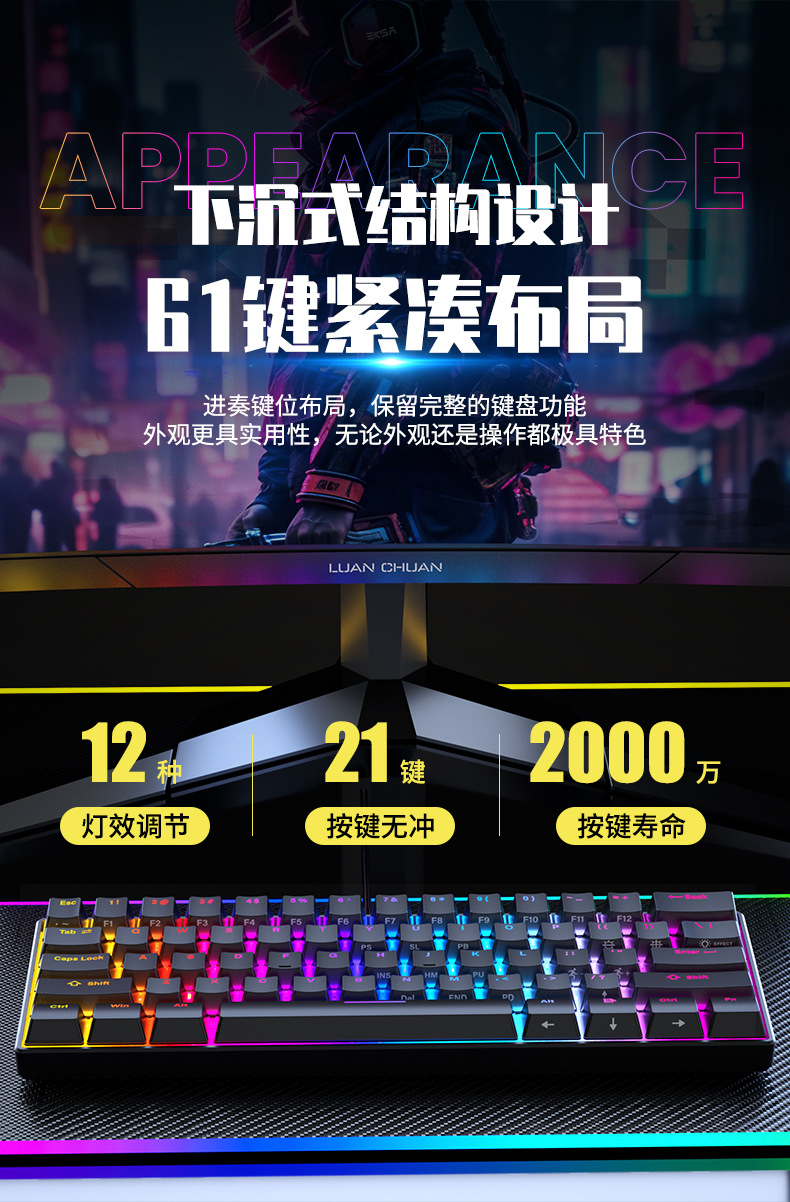 87键黑莓侧刻三模RGB,热插拔