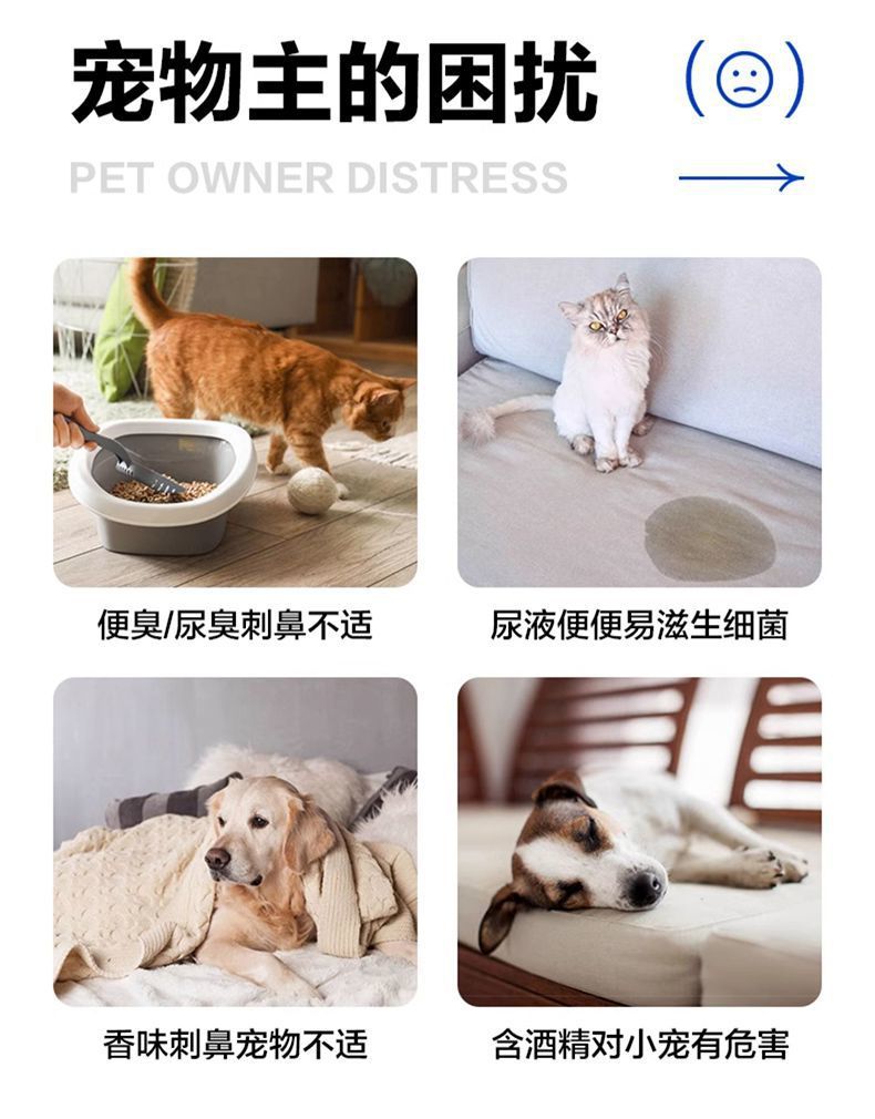 소변 냄새를 제거하는 애완동물 탈취제 스프레이, 가정용 실내 탈취제, 고양이 쓰레기통, 고양이와 개의 배설물 소독 및 항균