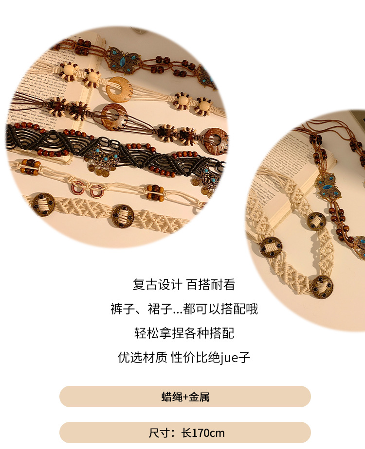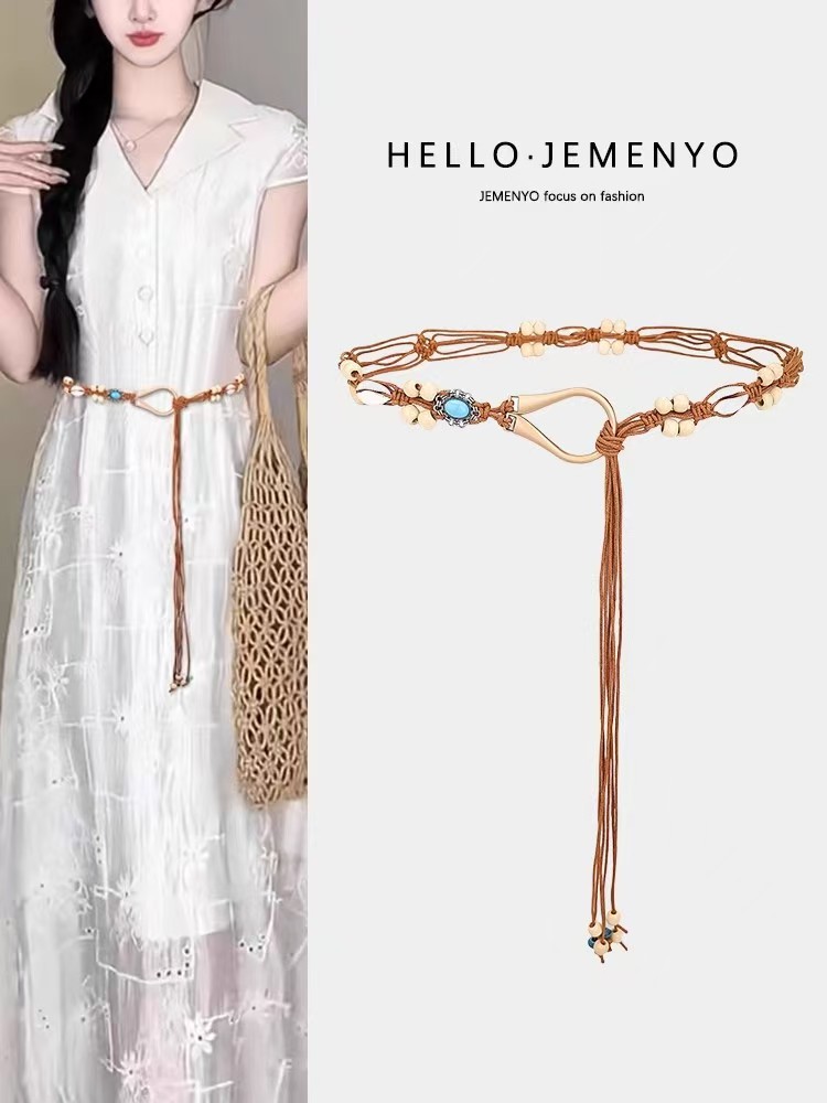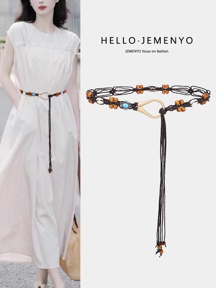 보헤미안 민족 스타일 짠 허리 로프 여성 허리 체인 문학 복고풍 다목적 드레스 액세서리 벨트 도매스토어 가기