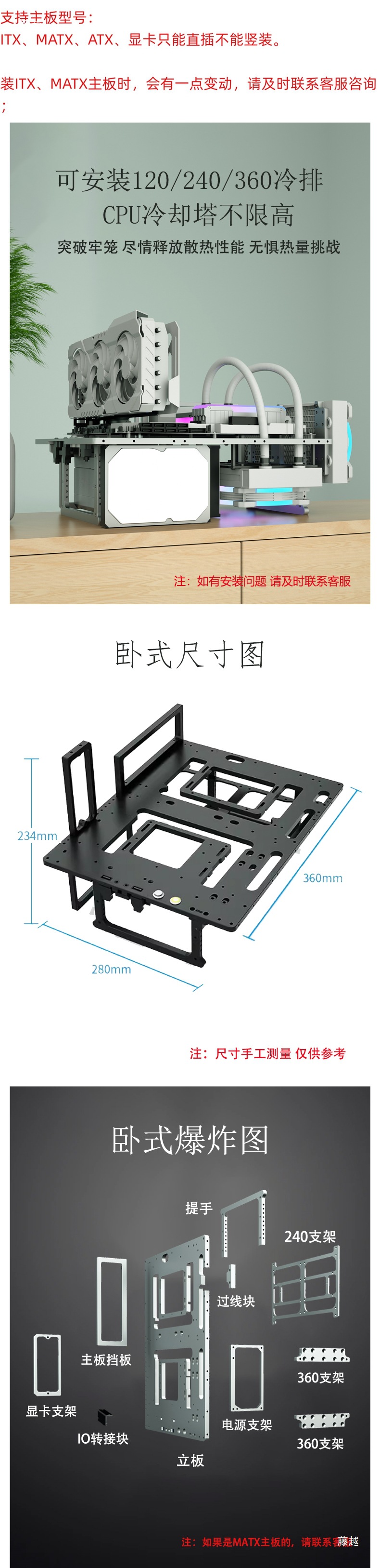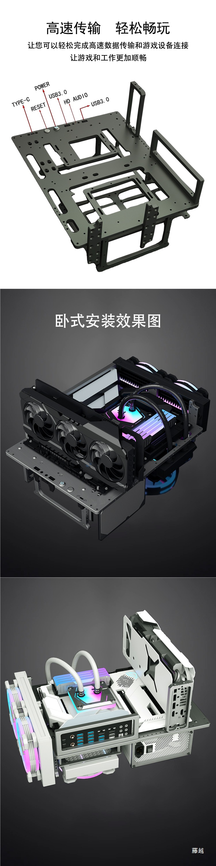 빠른 설치 수평 개방형 섀시 ATX 간단한 DIY 크리에이티브 MATX 수냉식 공냉식 섀시 컴퓨터 데스크탑