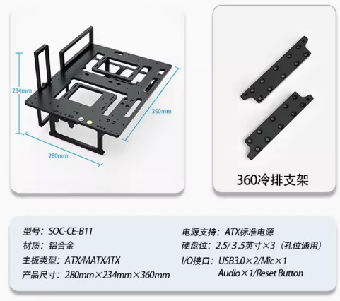 빠른 설치 수평 개방형 섀시 ATX 간단한 DIY 크리에이티브 MATX 수냉식 공냉식 섀시 컴퓨터 데스크탑스토어 가기