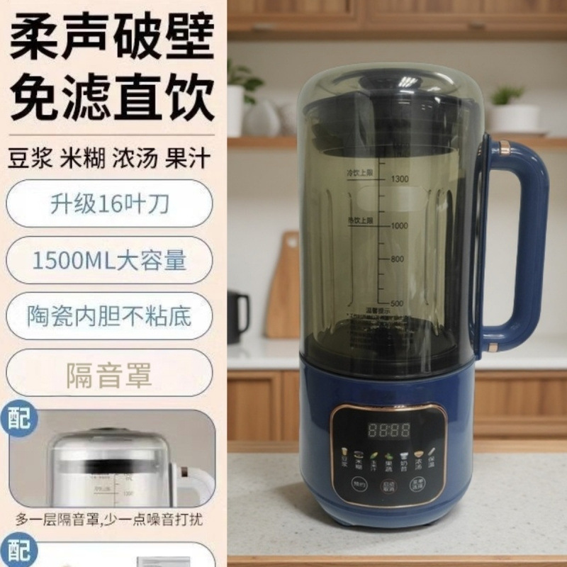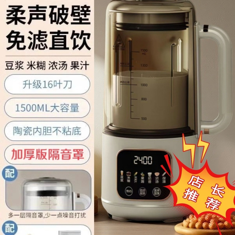 全自动破壁机半静音加热豆浆机精准1.5L大容量高颜值智能触控无刷