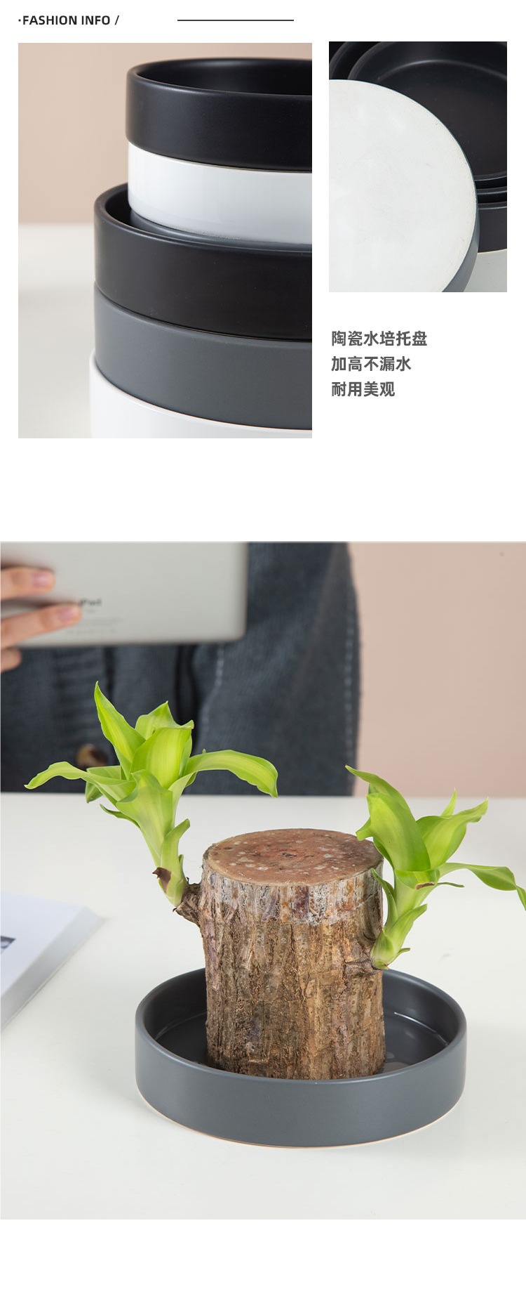 행운의 브라질 나무 수경 세라믹 트레이 둥근 화분 베이스 데스크탑 누출 방지 강화 및 깊은 물 트레이스토어 가기