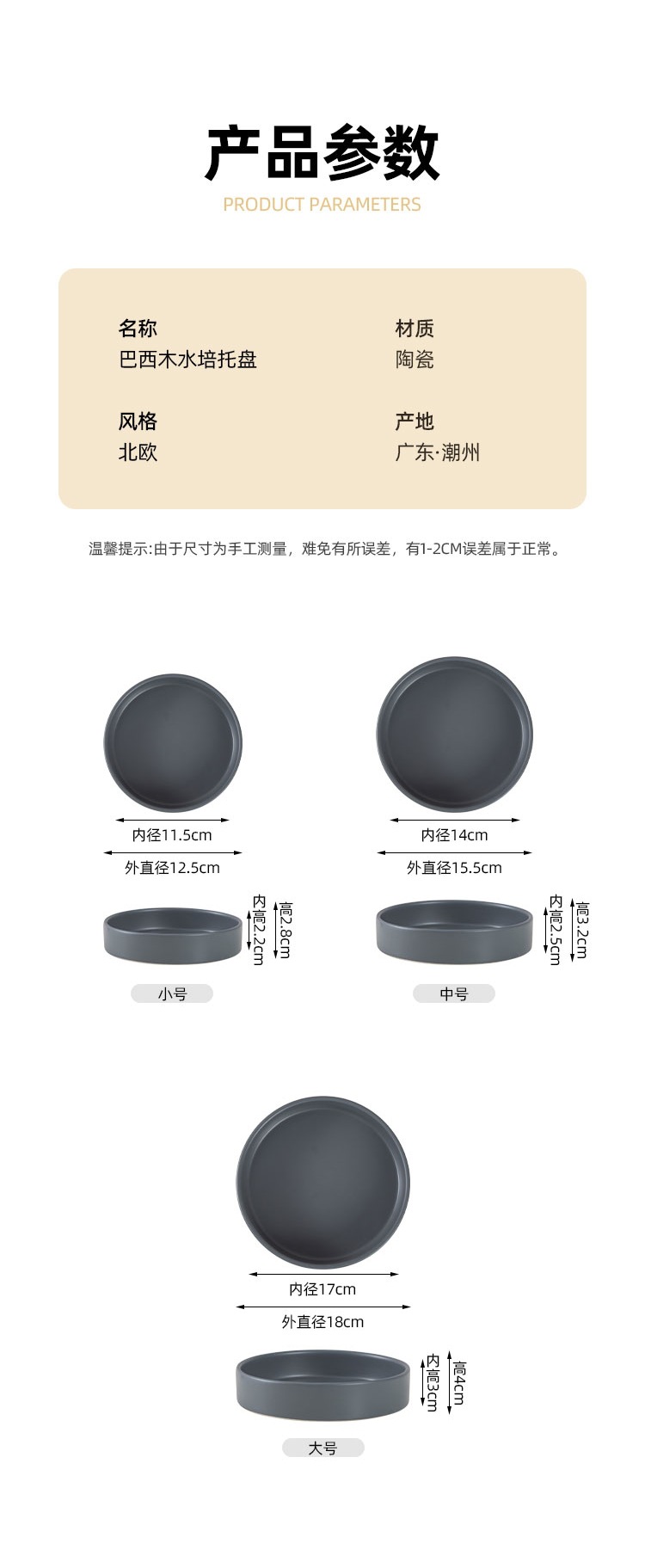 행운의 브라질 나무 수경 세라믹 트레이 둥근 화분 베이스 데스크탑 누출 방지 강화 및 깊은 물 트레이