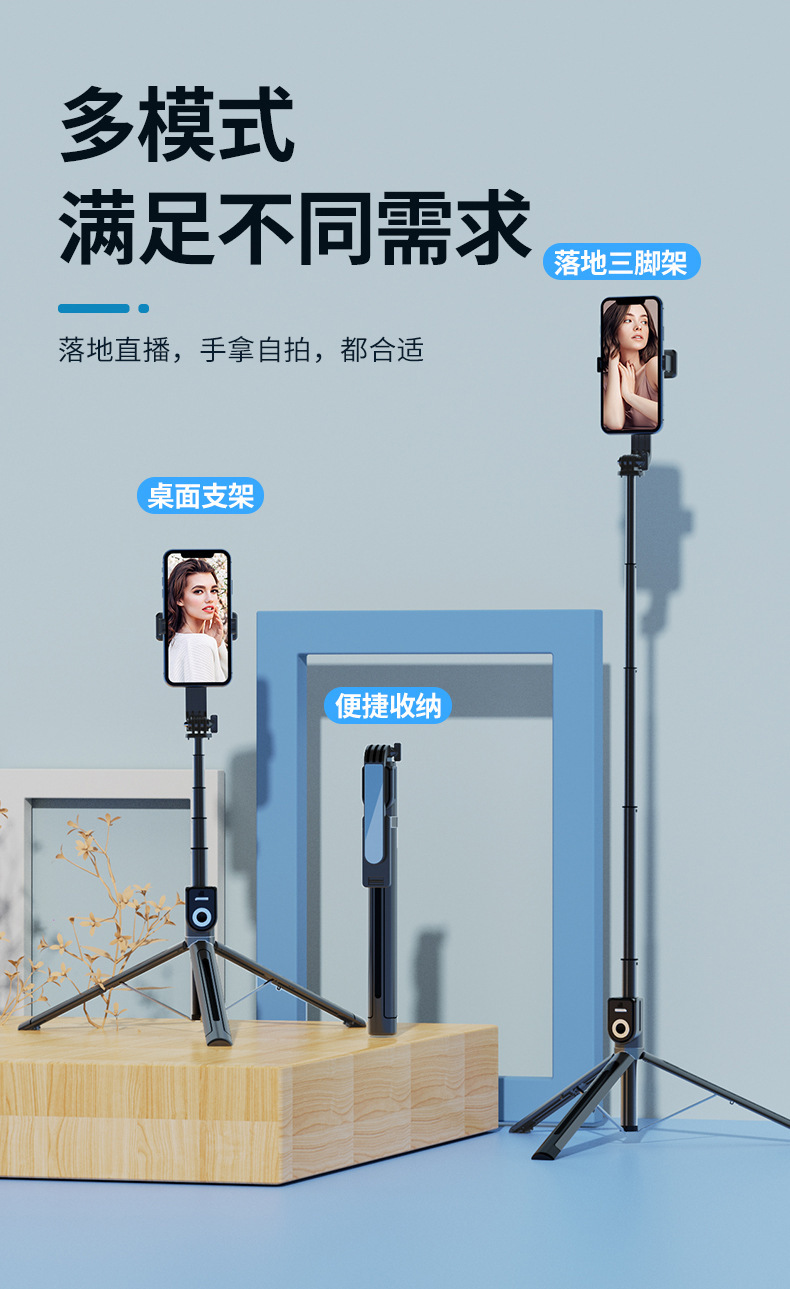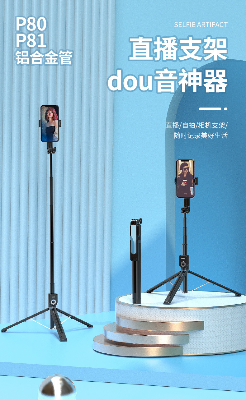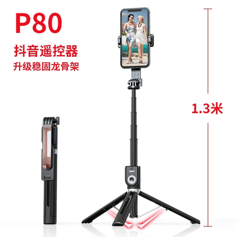 플로어 스탠딩 삼각대 확장 P80 다기능 사진 휴대용 삼각대 라이브 방송 유물 휴대 전화 블루투스 셀카 스틱