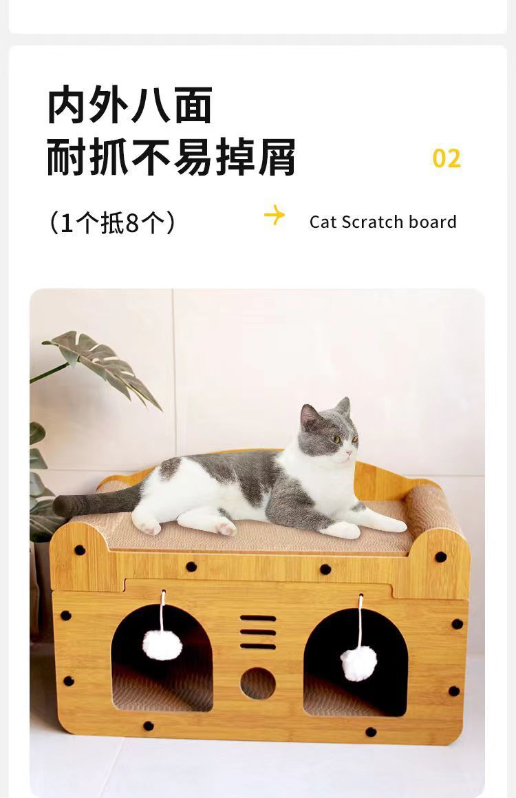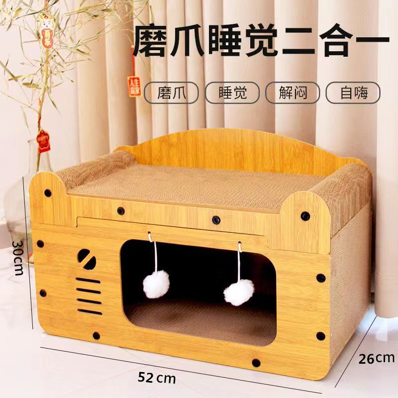 새로운 이중층 스크래치 보드, 내마모성 및 내구성, 다기능 올인원 소파, 골판지, 사계절 범용 장난감 고양이 집 빌라