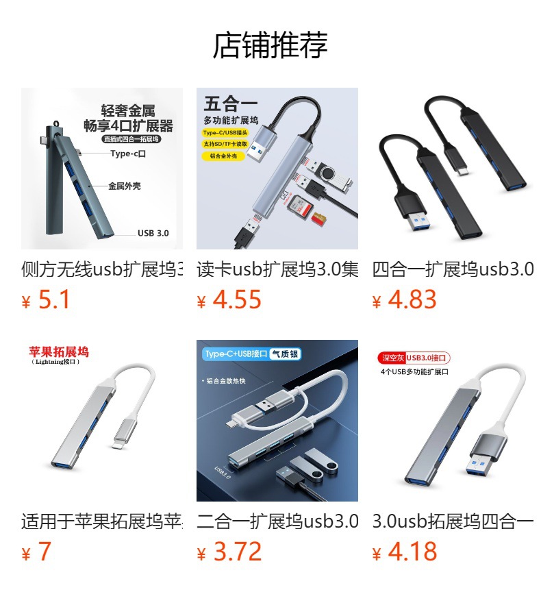 USB3.0 4-in-one 다기능 확장기 직접 플러그인 컴퓨터 어댑터 U 디스크 측면 플러그 범용 typec 확장 도크스토어 가기