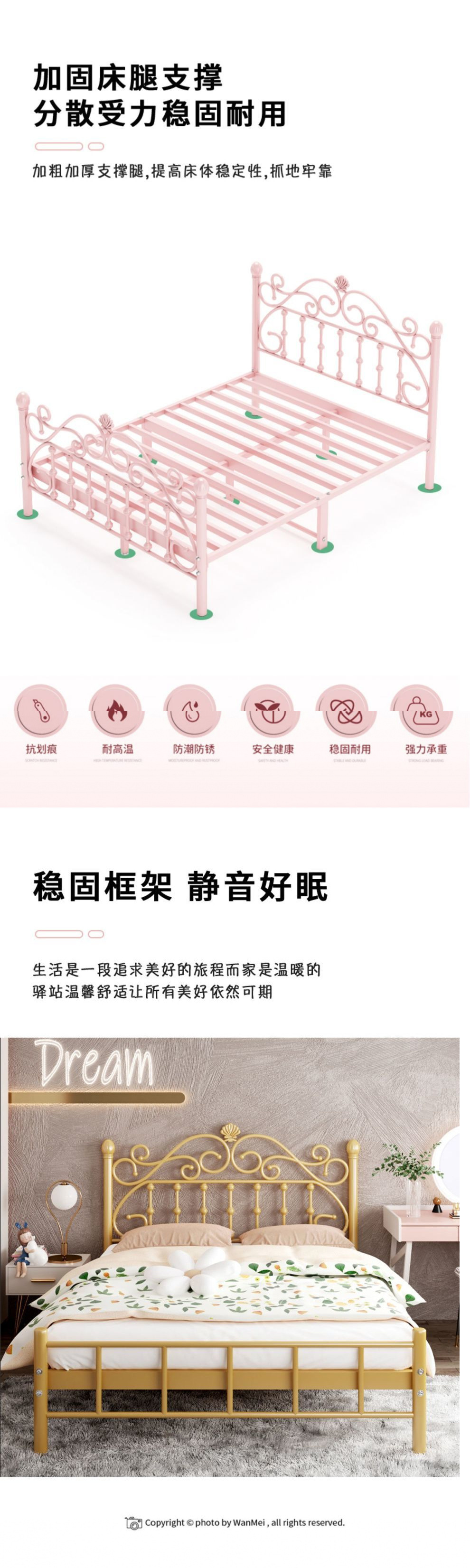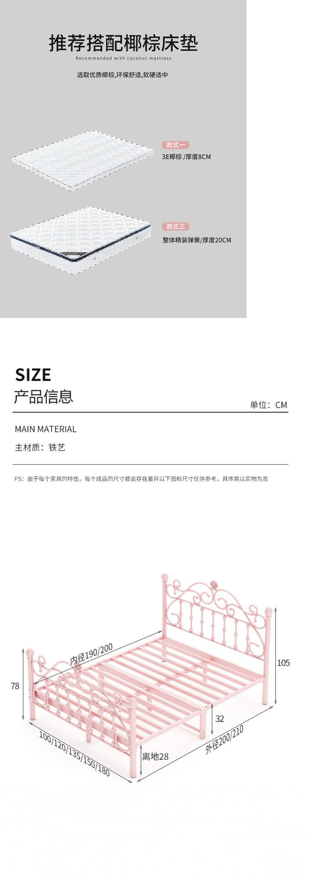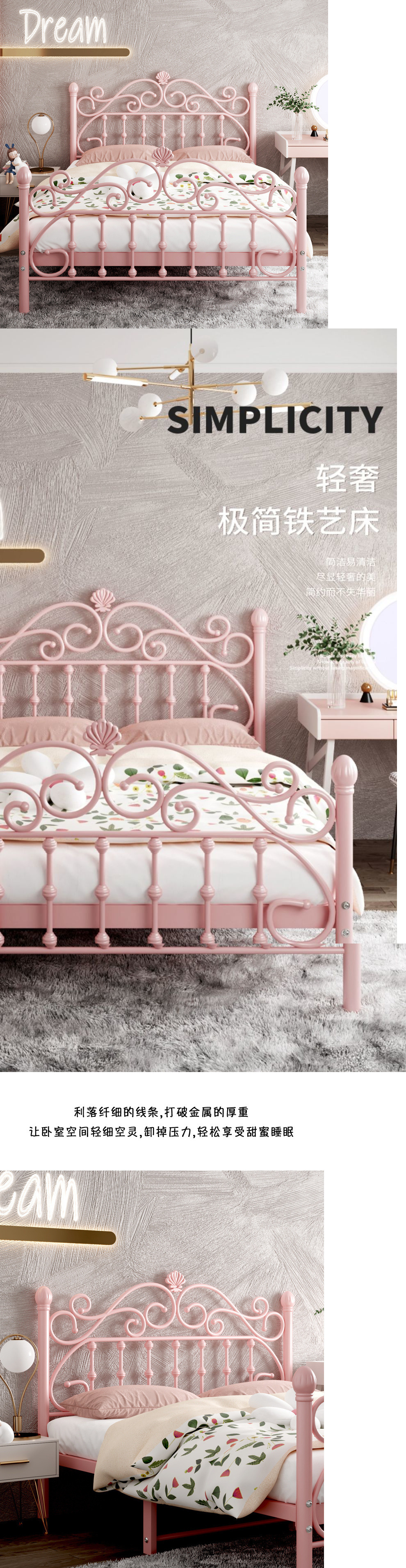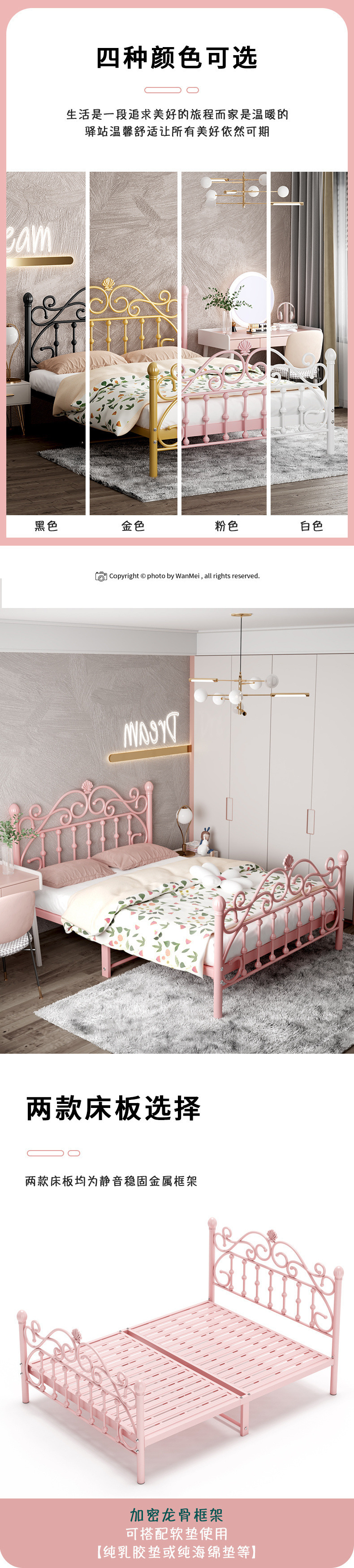 철제 침대 두꺼워지고 강화된 심플 모던 공주 침대 인터넷 연예인 1.8m 더블 침대 북유럽 싱글 1m 철제 프레임 침대