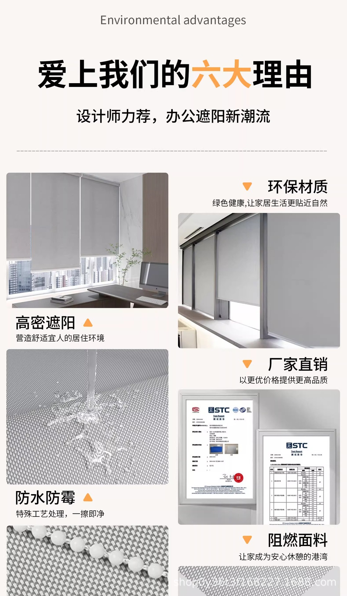 동관 심천 광저우 사무실 커튼 햇빛 패브릭 커튼 차광 난연성 투명 전기 손으로 당기는 롤러 블라인드스토어 가기