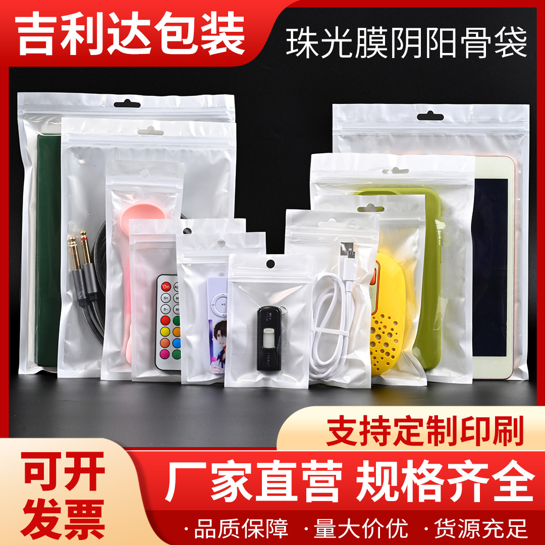 흰색 진주 빛 필름 음과 양 풀백 데이터 케이블 지퍼락 가방 보석 가방 속옷 휴대 전화 케이스 포장 가방 보호 커버