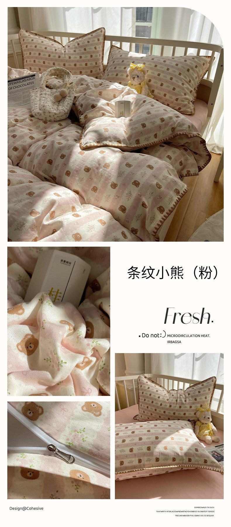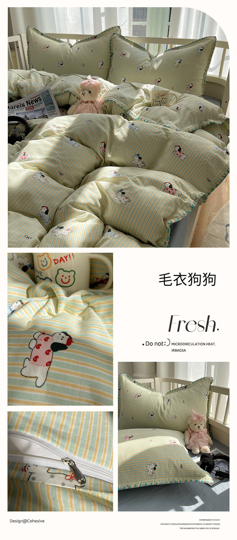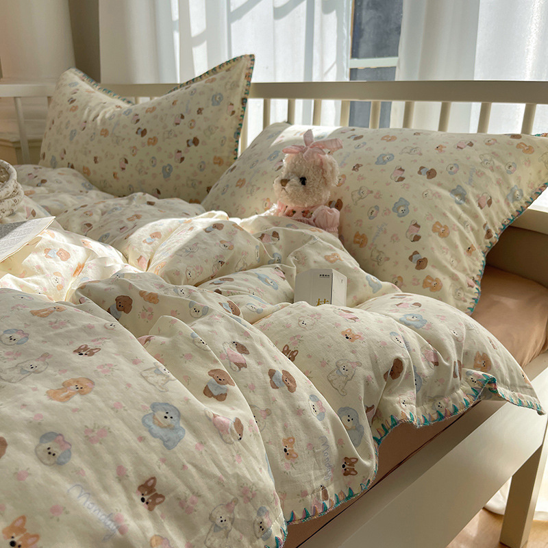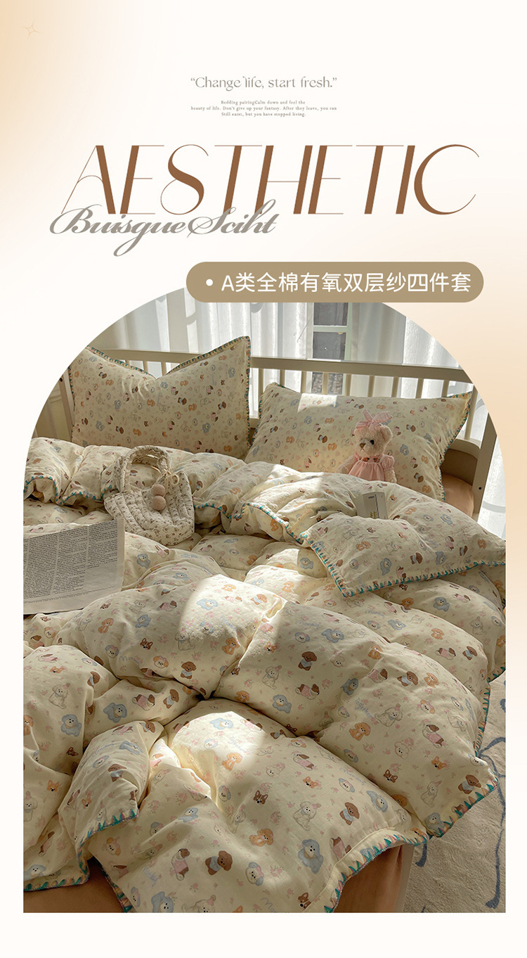 클래스 A 면 100% 순면 이불 커버 4피스 세트 학생 기숙사 싱글 3피스 세트 4스토어 가기