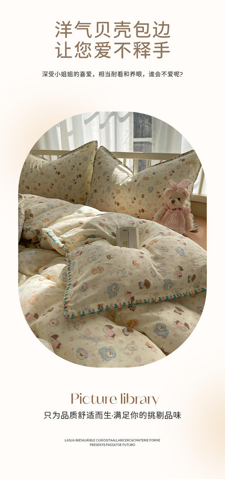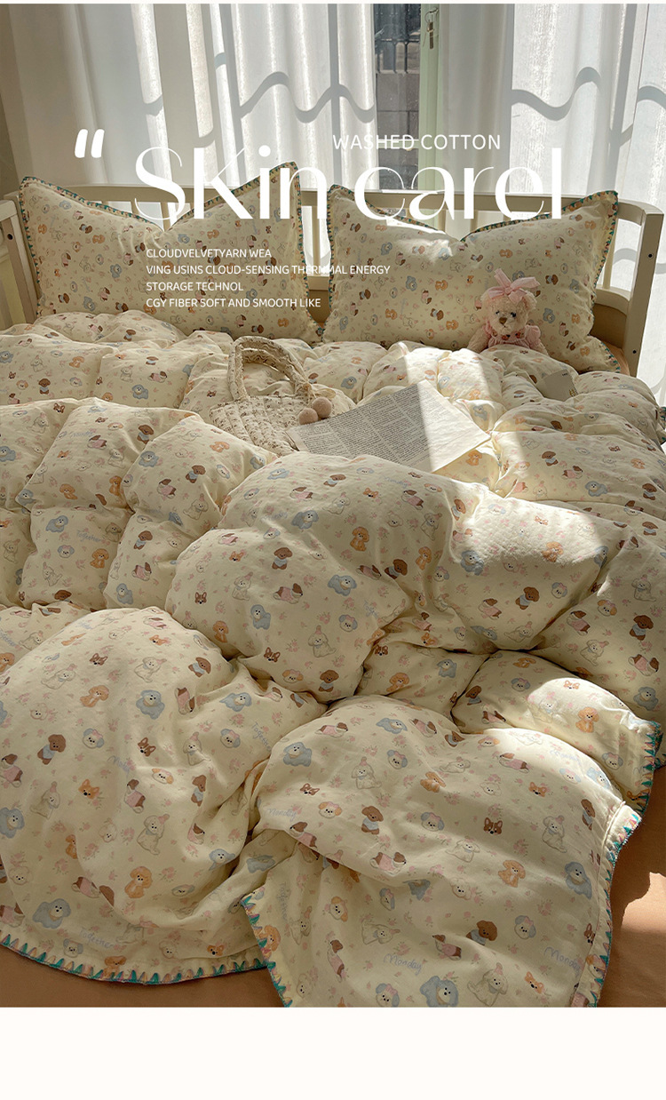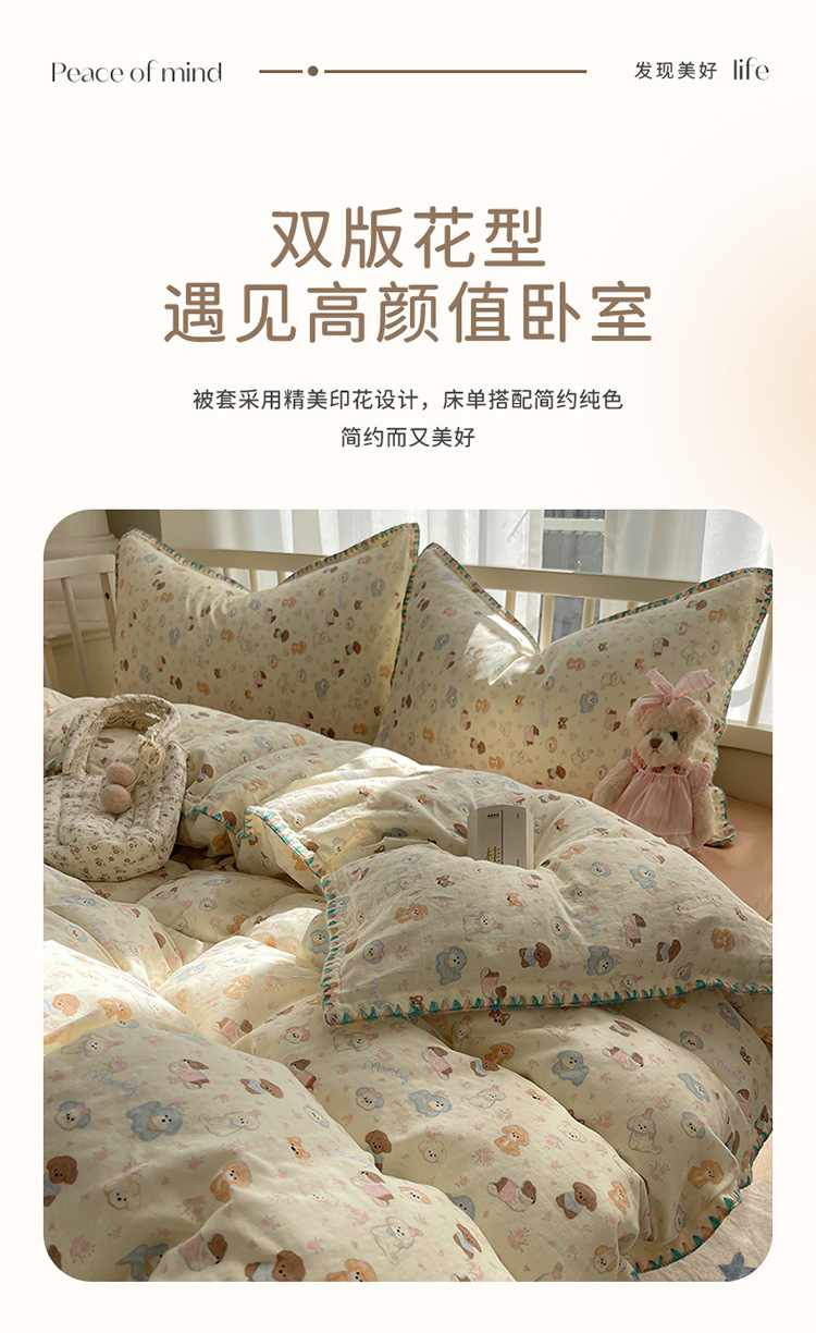 클래스 A 면 100% 순면 이불 커버 4피스 세트 학생 기숙사 싱글 3피스 세트 4스토어 가기