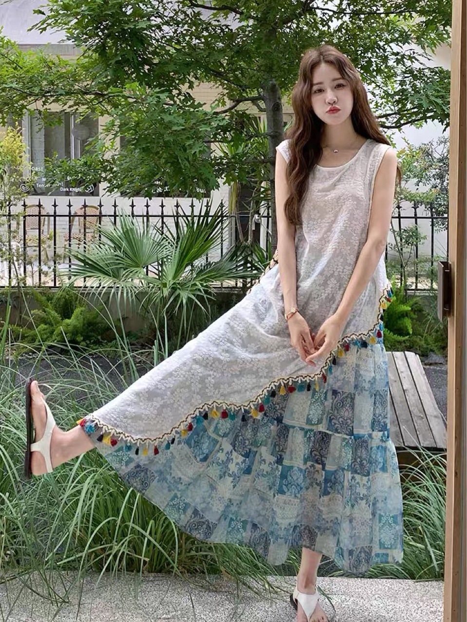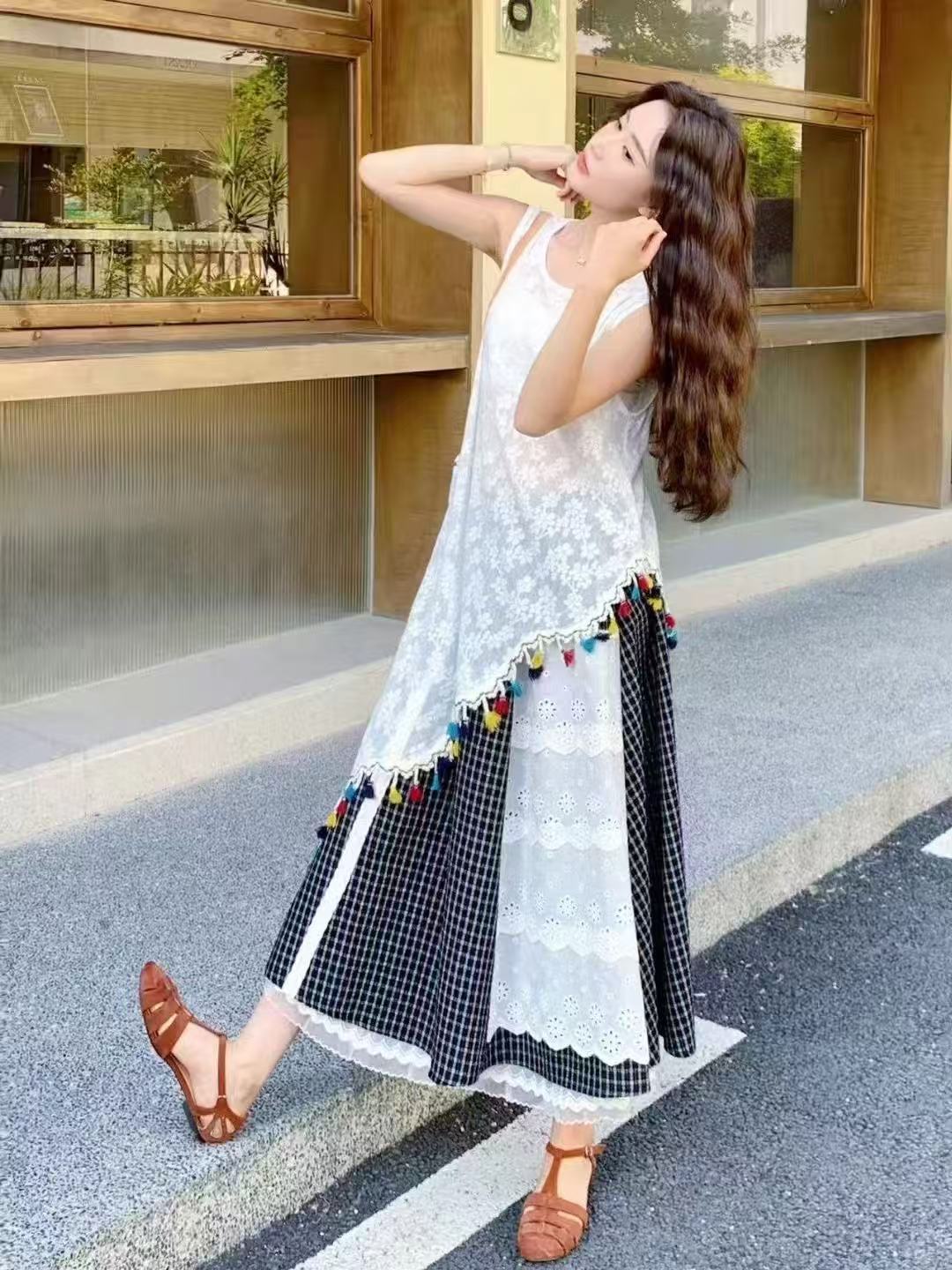 여성을위한 리조트 스타일 불규칙한 프린지 레이스 조끼 정장 스커트 여름 2025 새로운 꽃 스커트 투피스 세트스토어 가기