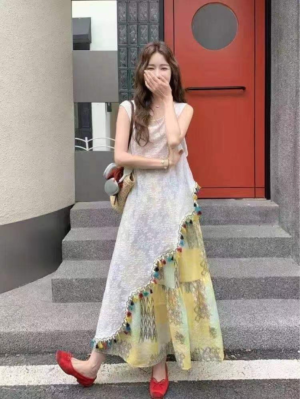 • 2719#흰색 상의 + 노란색 스커트