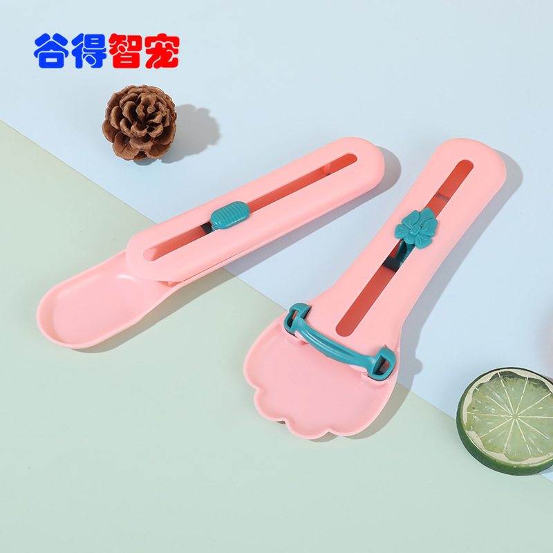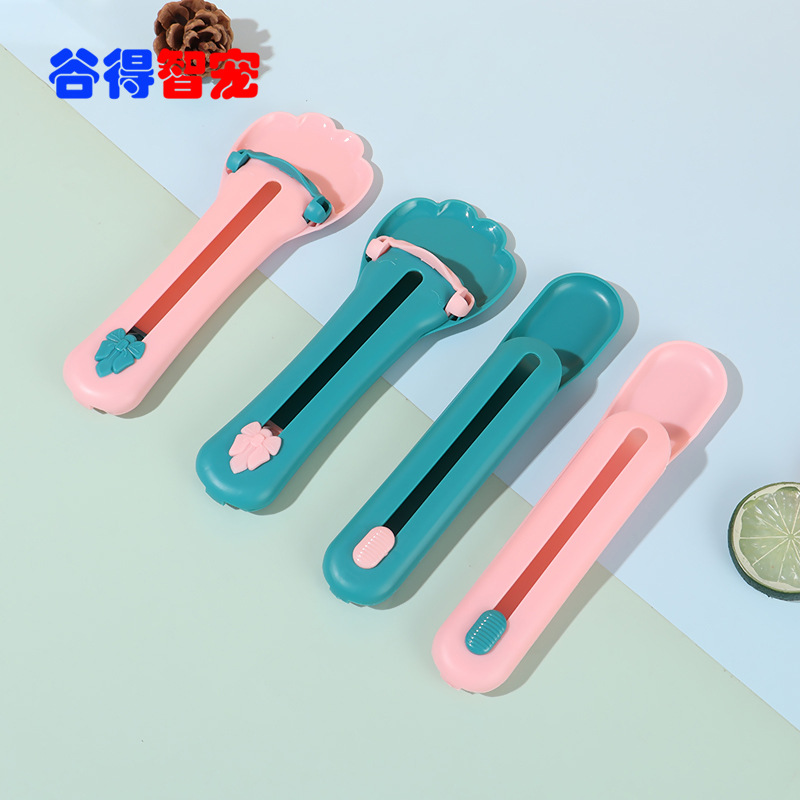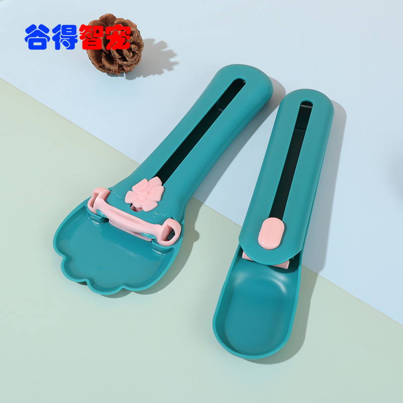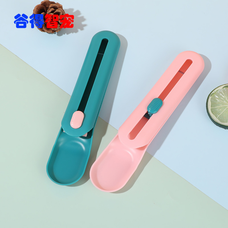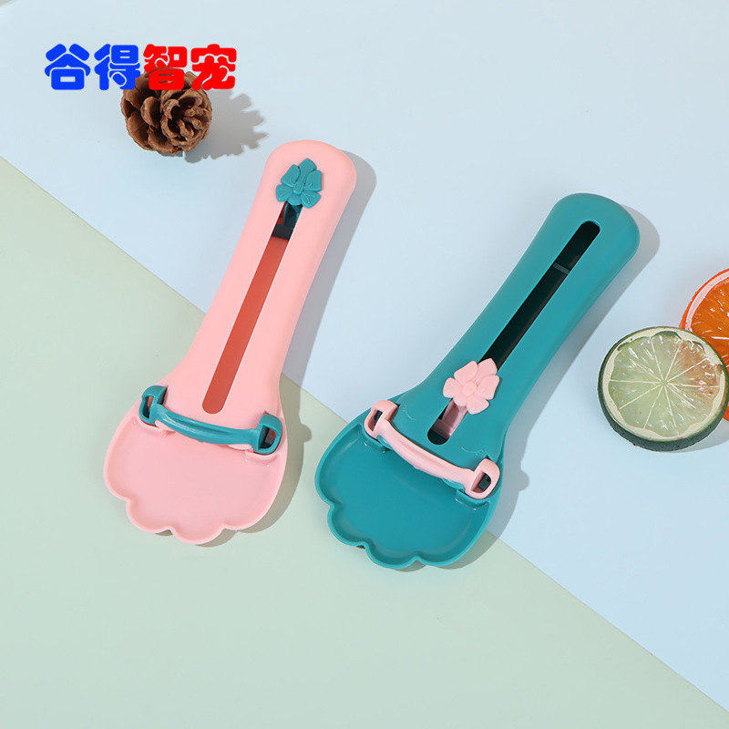 새로운 애완 동물 식기 고양이 스트립 압착 피더 긴 손잡이 고양이 스트립 스푼 스낵 고기 퓨레 스푼 고양이 먹이 스푼