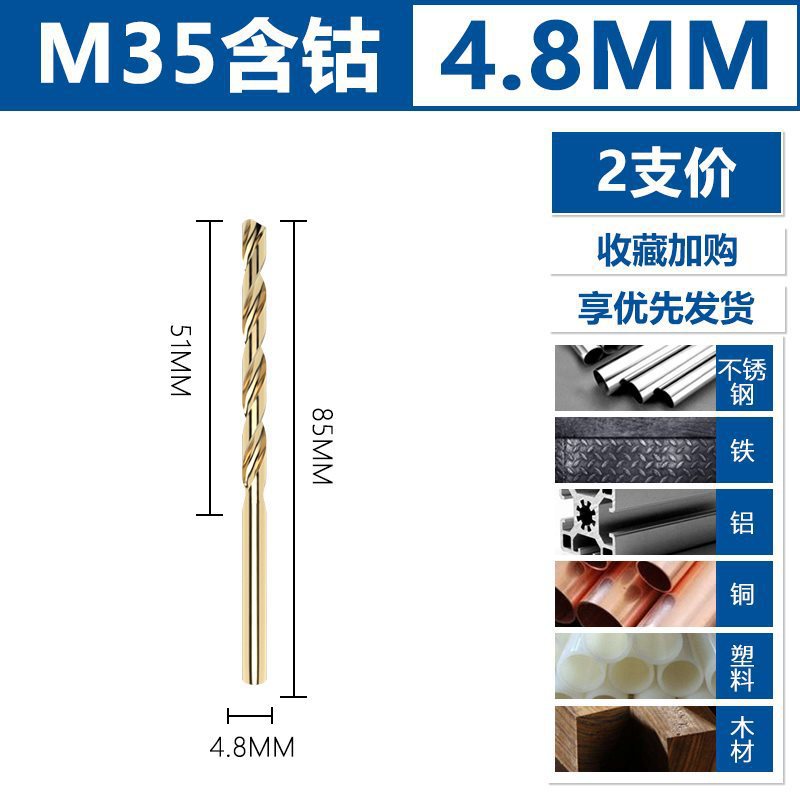트위스트 드릴 비트 스테인레스 스틸 코발트 함유 핸드 전기 드릴 고경도 드릴 비트 철판 드릴링 스트레이트 핸들
