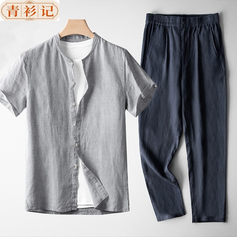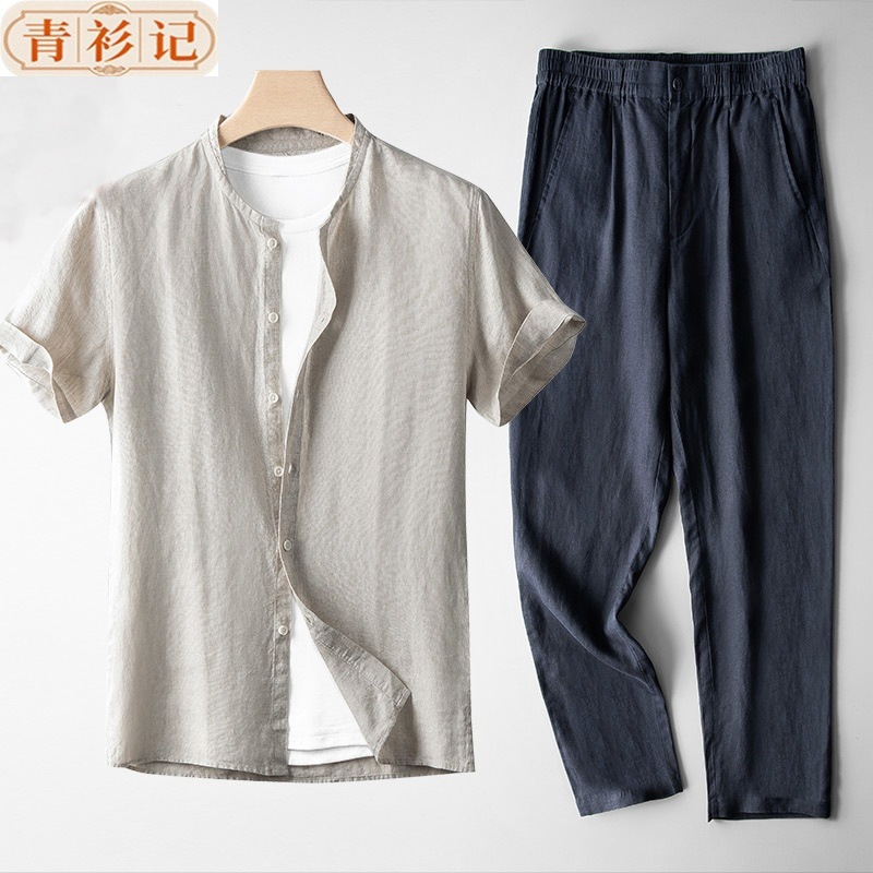 남성용 새로운 중국 스타일 린넨 당나라 정장 정장 복고풍 얇은 긴팔 중국 스타일 면화 및 린넨 통기성 캐주얼 셔츠 투피스 세트스토어 가기