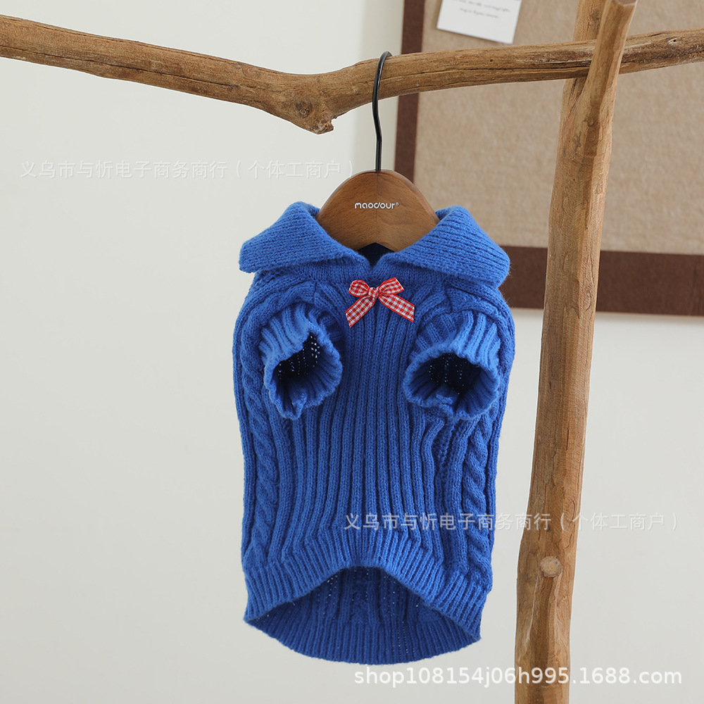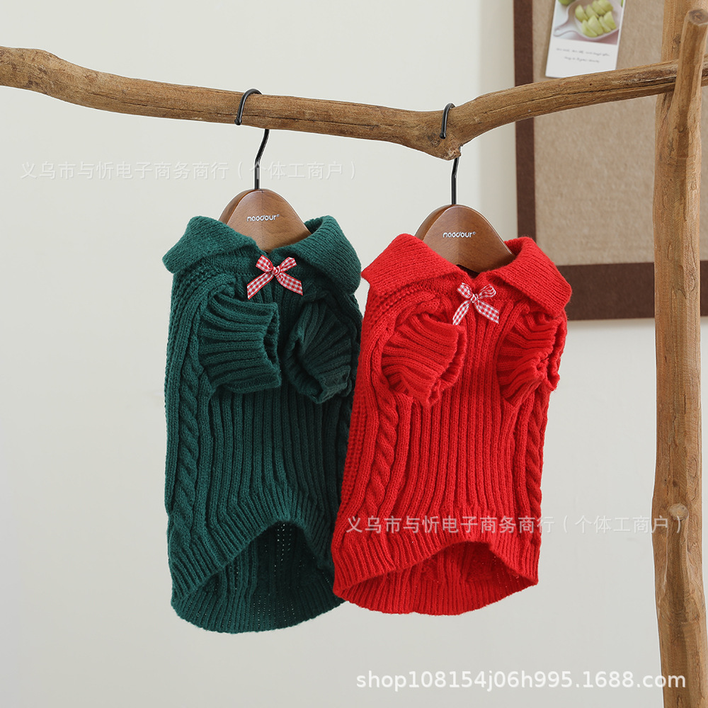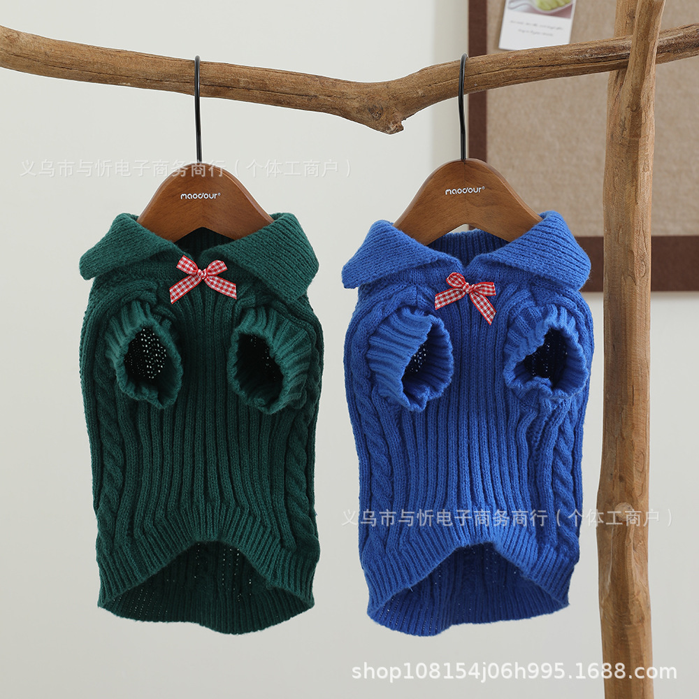 개 스웨터 격자 무늬 활 신사 옷깃 귀여운 스웨터 따뜻한 니트 스웨터 애완견 옷스토어 가기