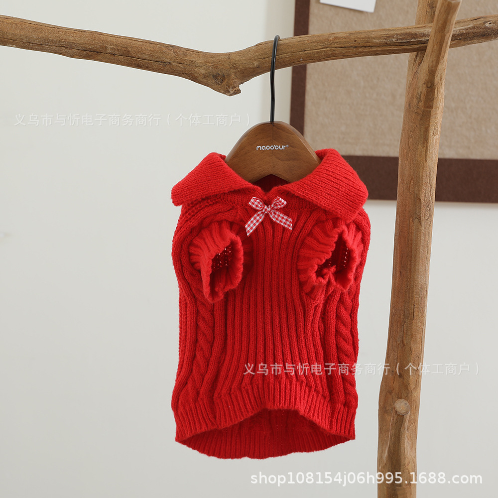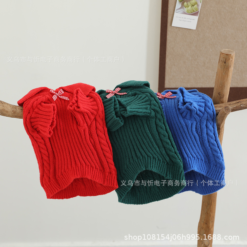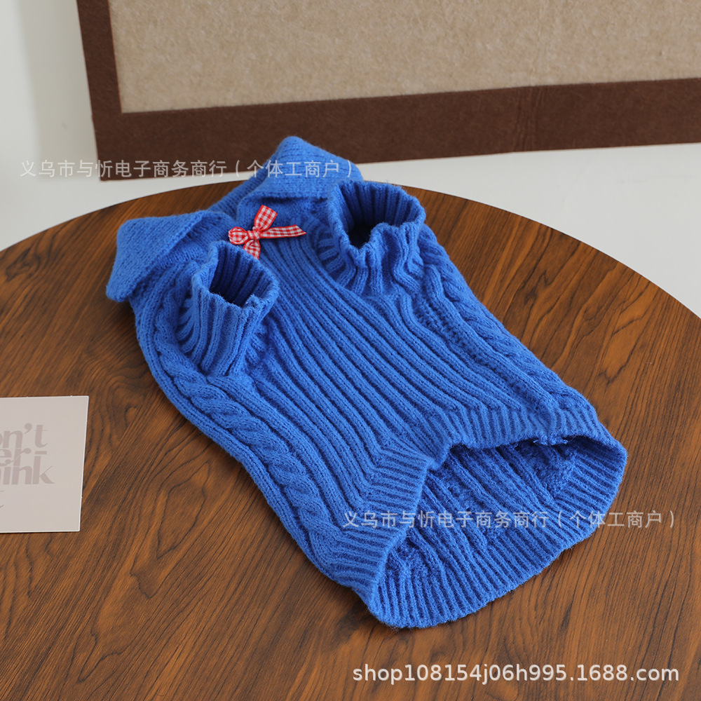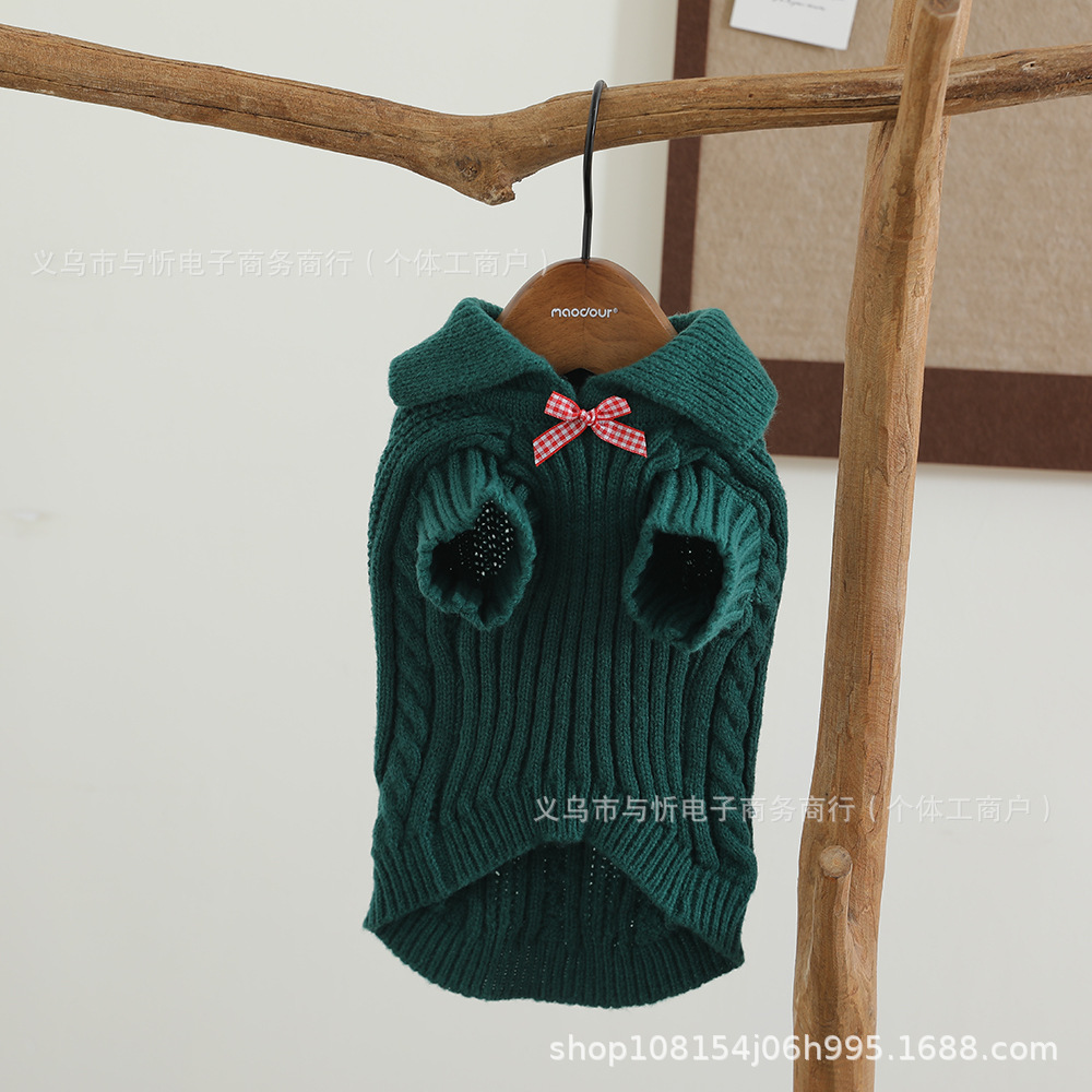 개 스웨터 격자 무늬 활 신사 옷깃 귀여운 스웨터 따뜻한 니트 스웨터 애완견 옷스토어 가기