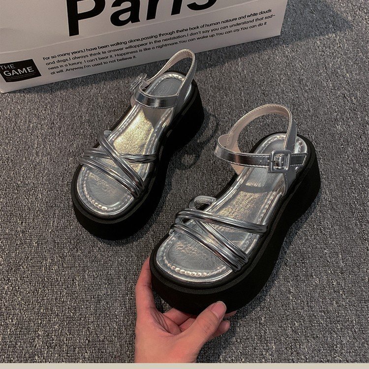 여성용 우아한 샌들 2025 여름 새로운 두꺼운 밑창으로 패션을 높여주는 스커트와 매치하기 쉬운 비치 로마 샌들스토어 가기