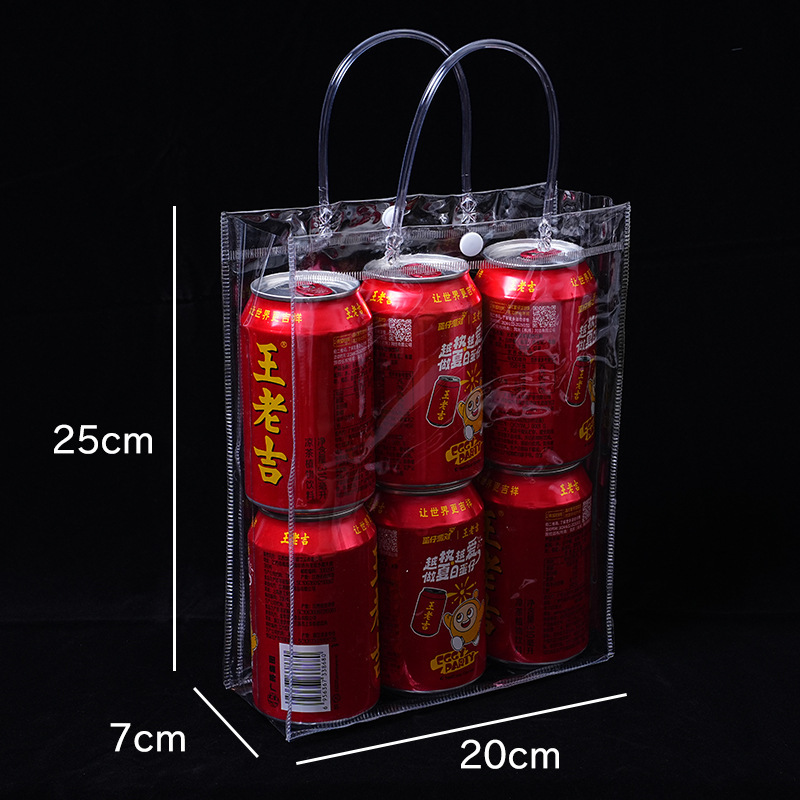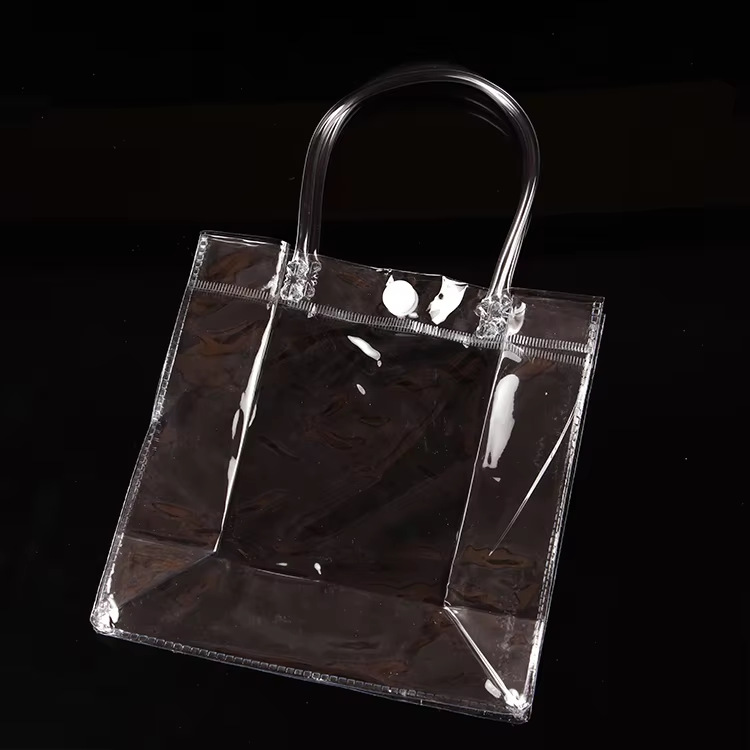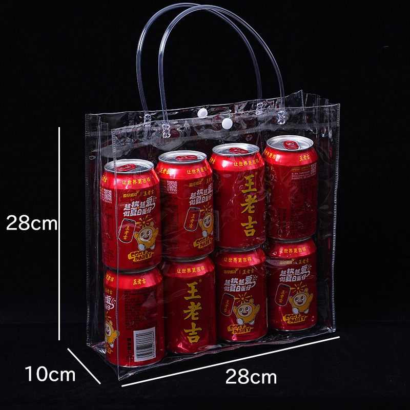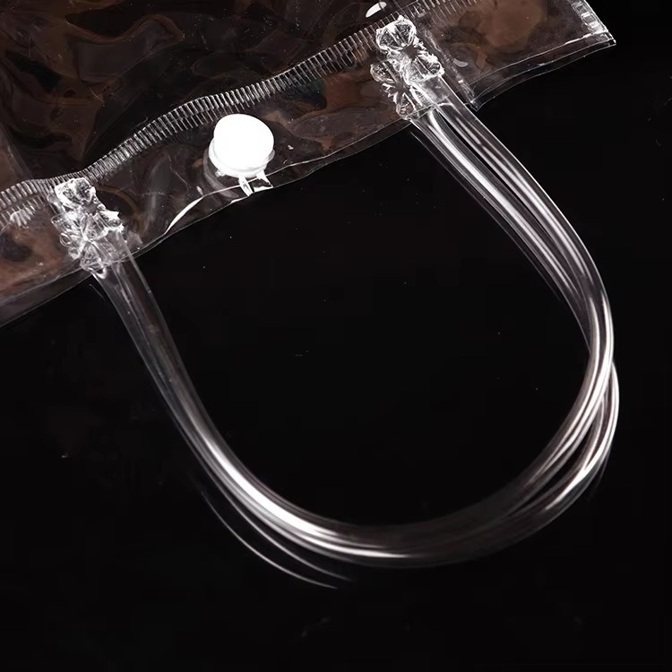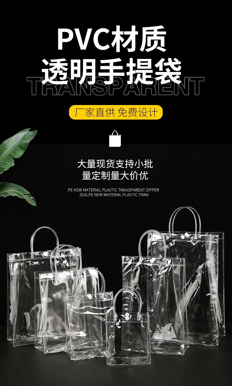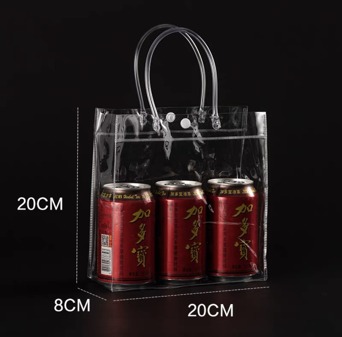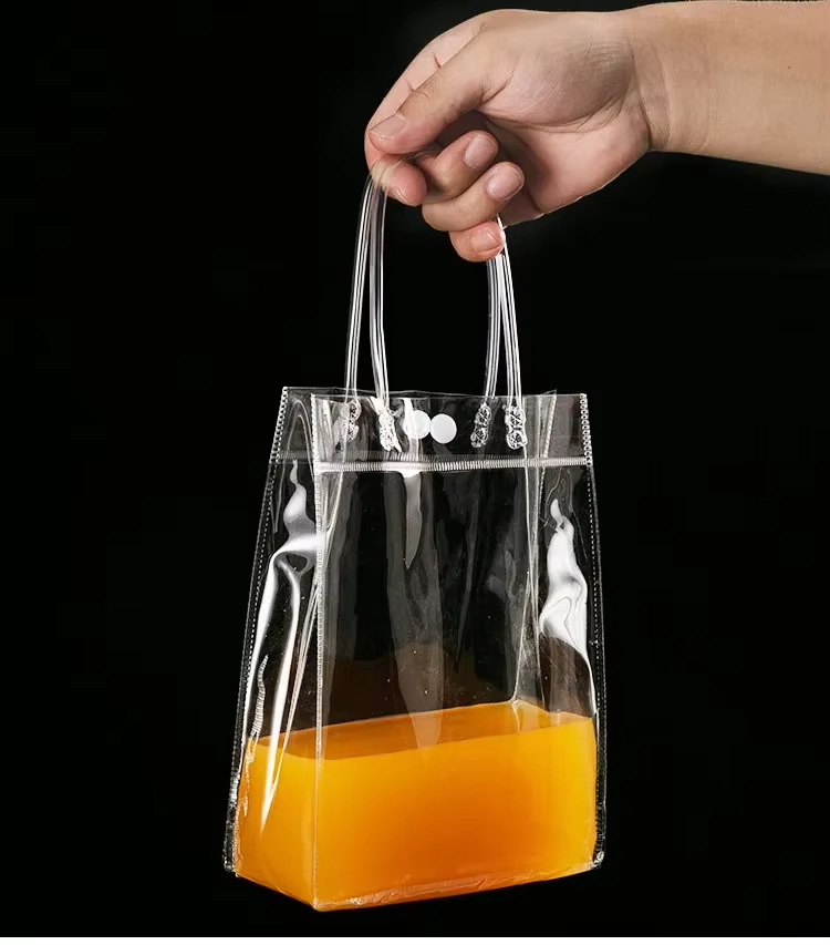 로고가 인쇄된 PVC 투명 핸드백, 기념품 선물 쇼핑백, 밀크티 숨겨진 버튼, 웨딩 캔디 포장 비닐봉지스토어 가기
