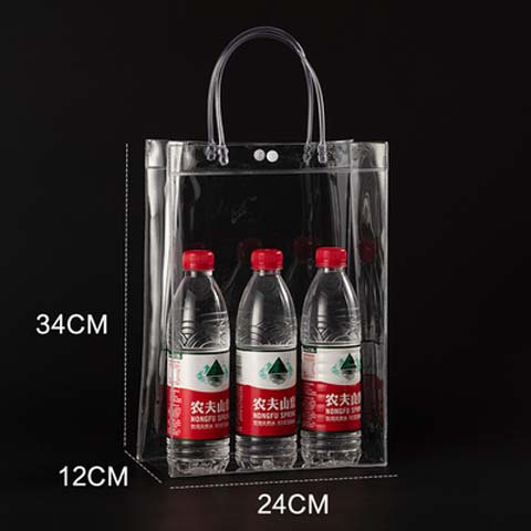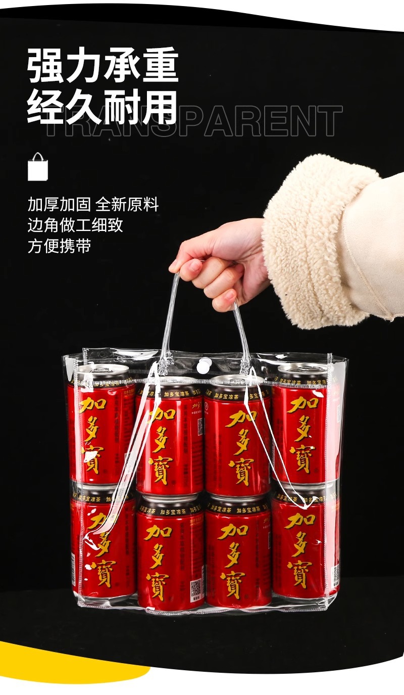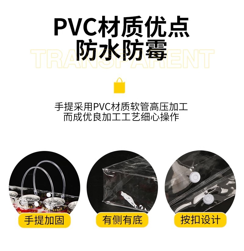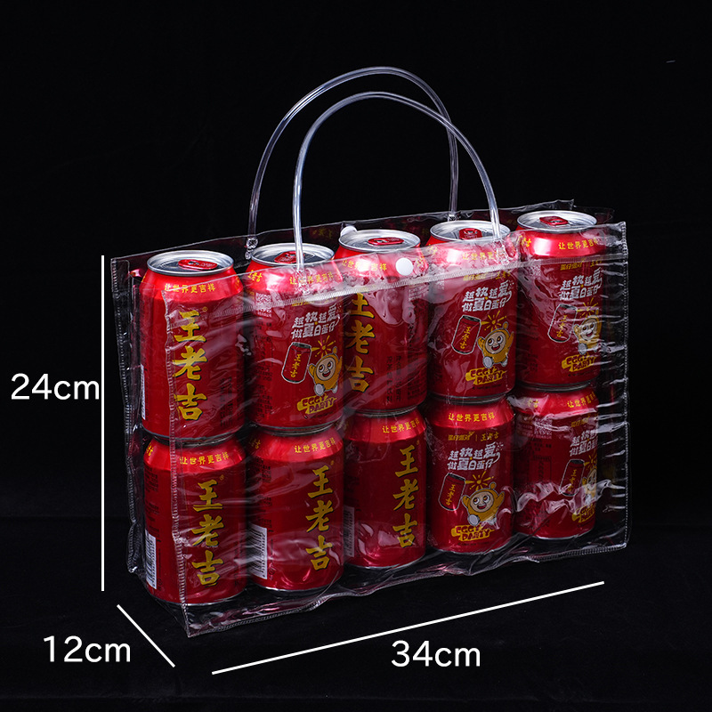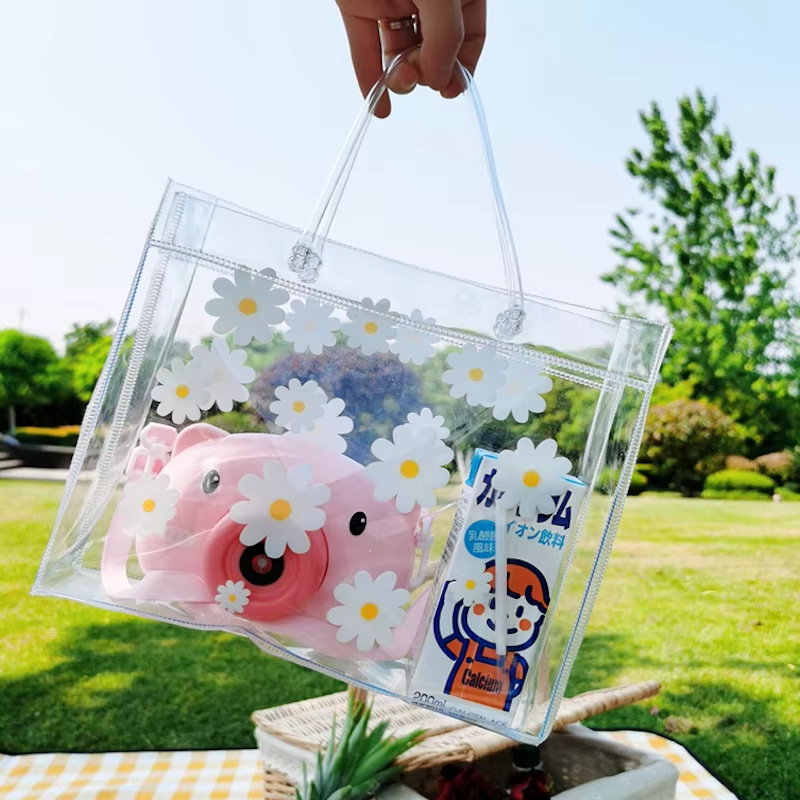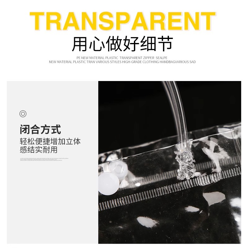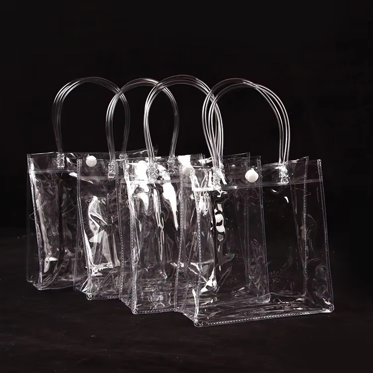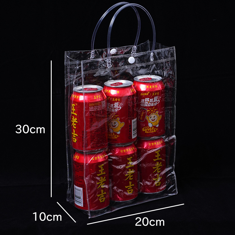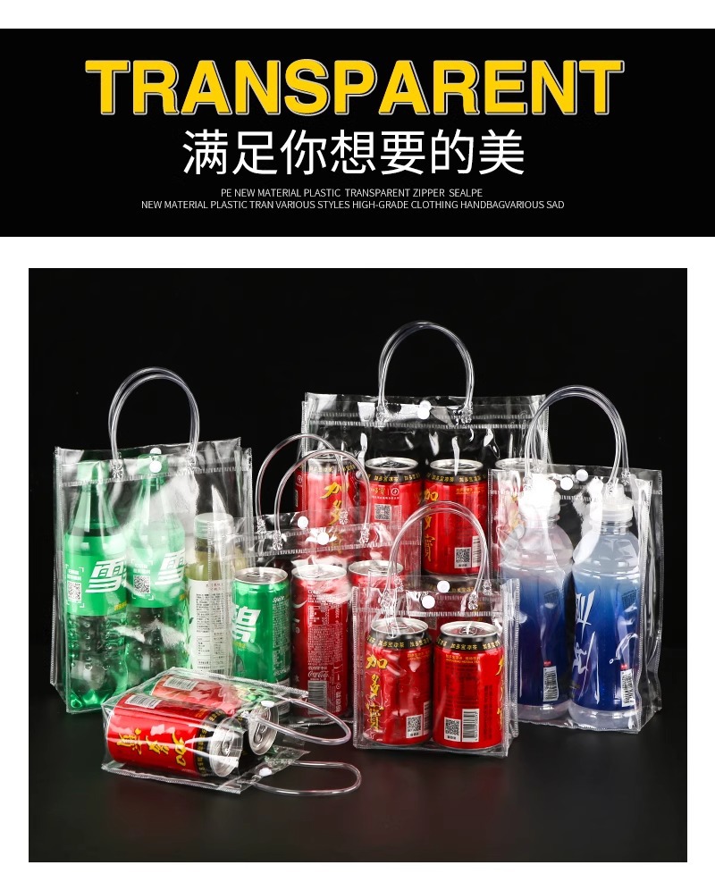 로고가 인쇄된 PVC 투명 핸드백, 기념품 선물 쇼핑백, 밀크티 숨겨진 버튼, 웨딩 캔디 포장 비닐봉지스토어 가기