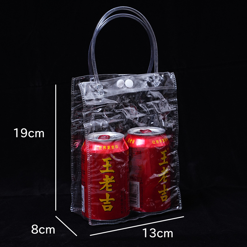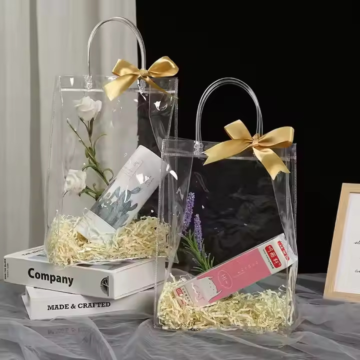 로고가 인쇄된 PVC 투명 핸드백, 기념품 선물 쇼핑백, 밀크티 숨겨진 버튼, 웨딩 캔디 포장 비닐봉지