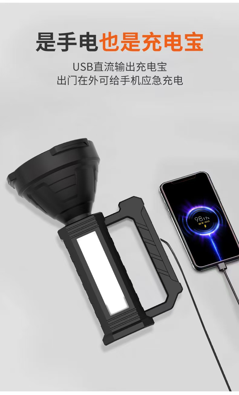 국경 간 USB 충전식 휴대용 램프 플라스틱 COB 손전등 휴대용 서치 야외 비상 밝은 손전등