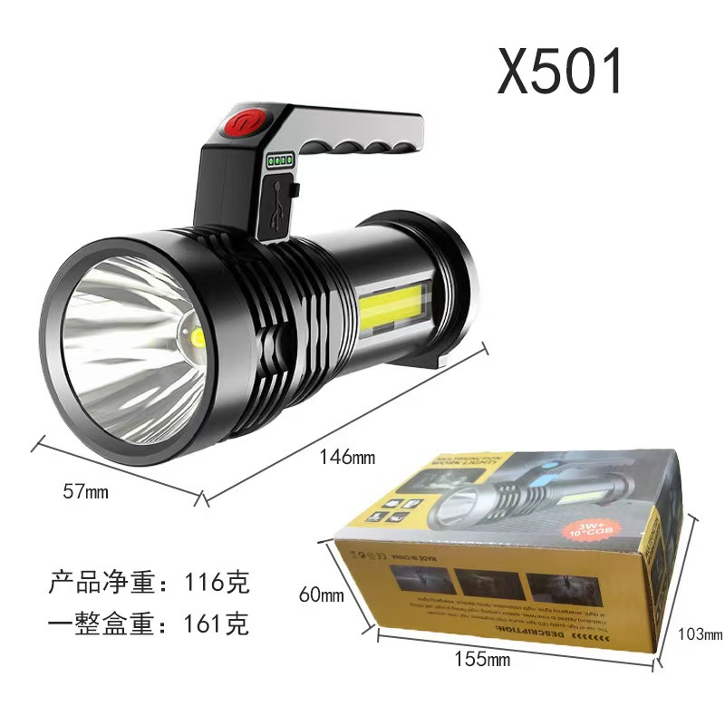 국경 간 USB 충전식 휴대용 램프 플라스틱 COB 손전등 휴대용 서치 야외 비상 밝은 손전등스토어 가기