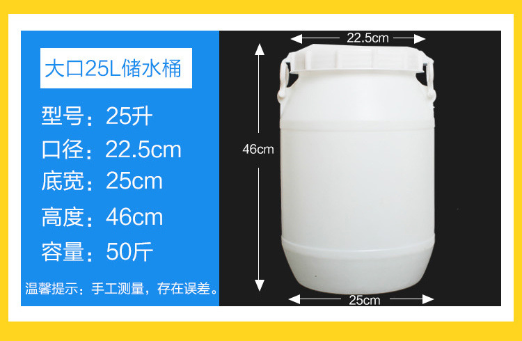 • 물이 담긴 25리터 드럼 23kg 내부 뚜껑이 있는 두꺼운 버전