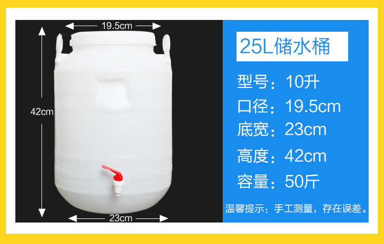 • 내부 뚜껑과 수도꼭지가 있는 25L 23kg 특대형 드럼