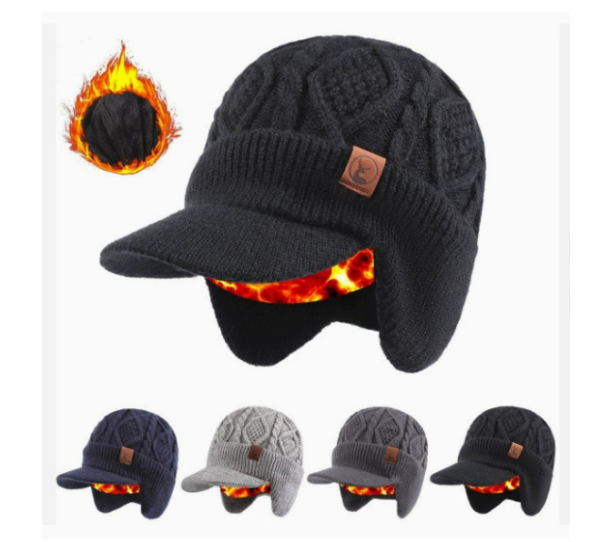 겨울철 남녀공용 두꺼운 벨벳 귀 보호 및 방한 따뜻한 모직 피크캡, 남성용 겨울 방한 및 따뜻한 니트 모자스토어 가기
