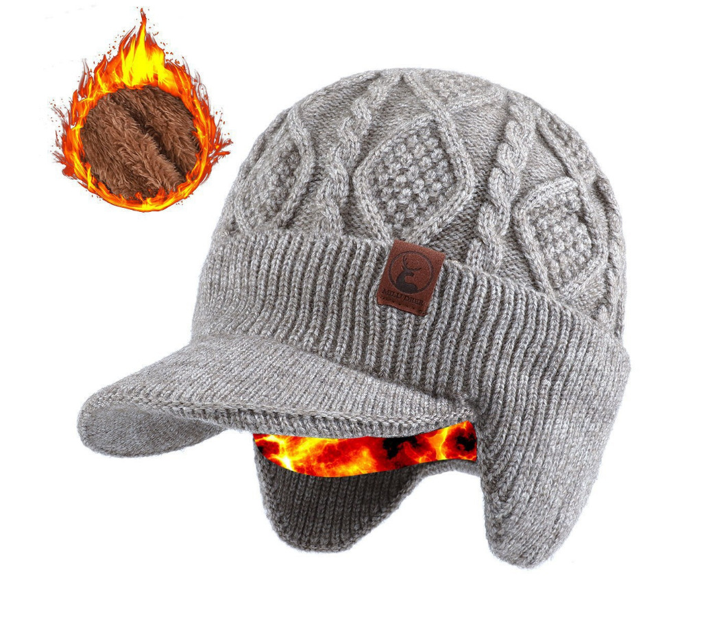 겨울철 남녀공용 두꺼운 벨벳 귀 보호 및 방한 따뜻한 모직 피크캡, 남성용 겨울 방한 및 따뜻한 니트 모자