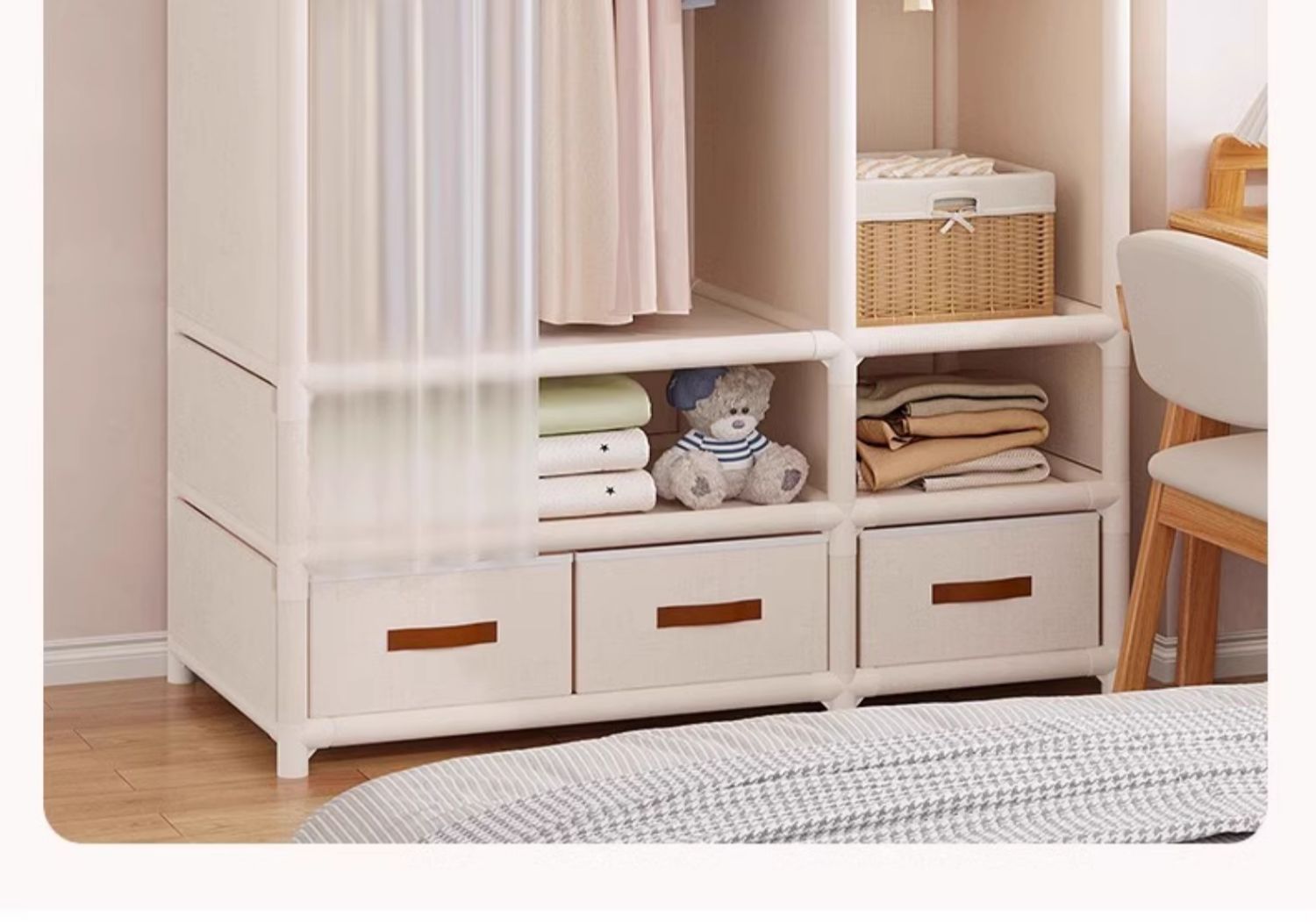 옷장 홈 침실 천 옷장 서랍이있는 간단한 옷장 작은 방 임대 방 튼튼한 옷장 보관함