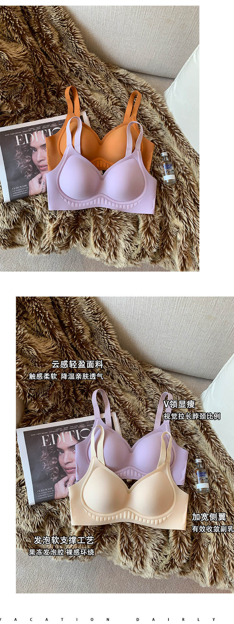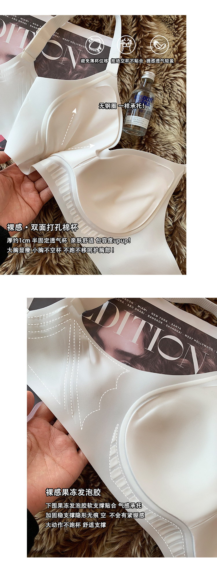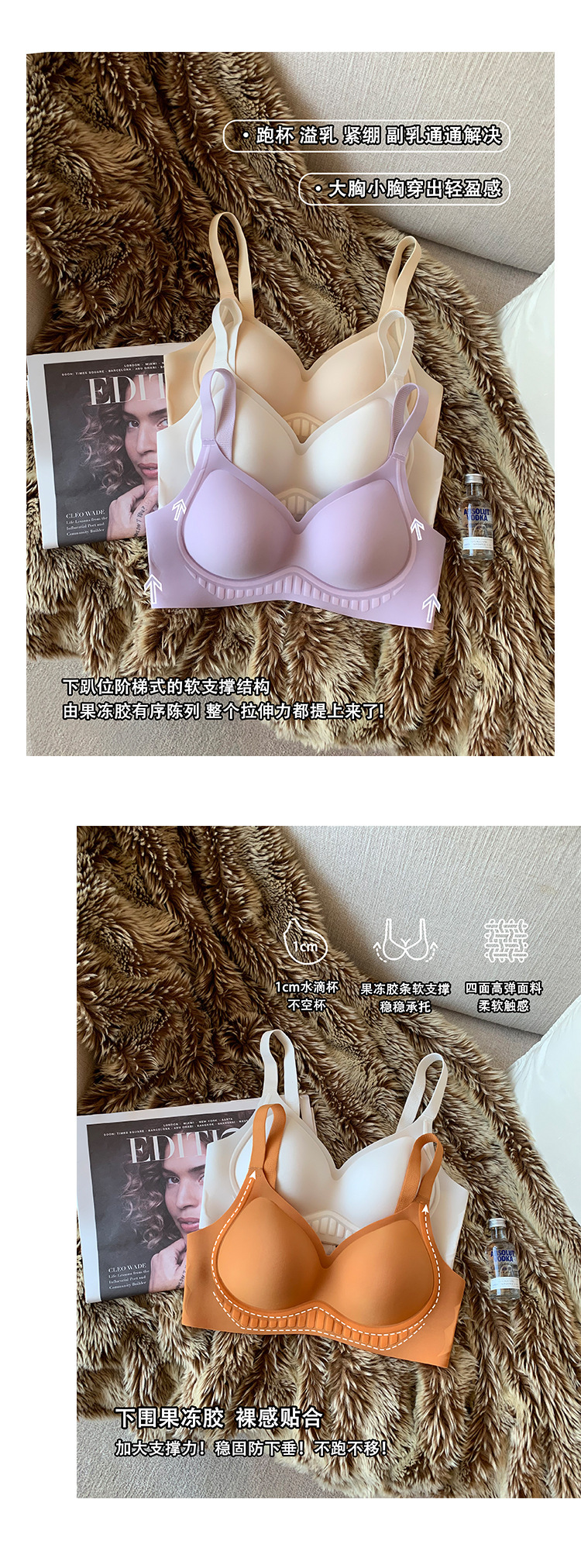 일본산 밀크 스킨 심리스 통기성 작은 가슴 푸시업 여성용 브라, 와이어 없음, 부드러운 지지력, 처짐 방지, 가슴 수축 브라스토어 가기