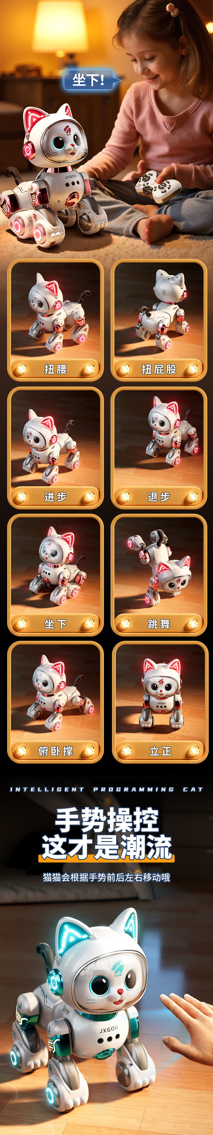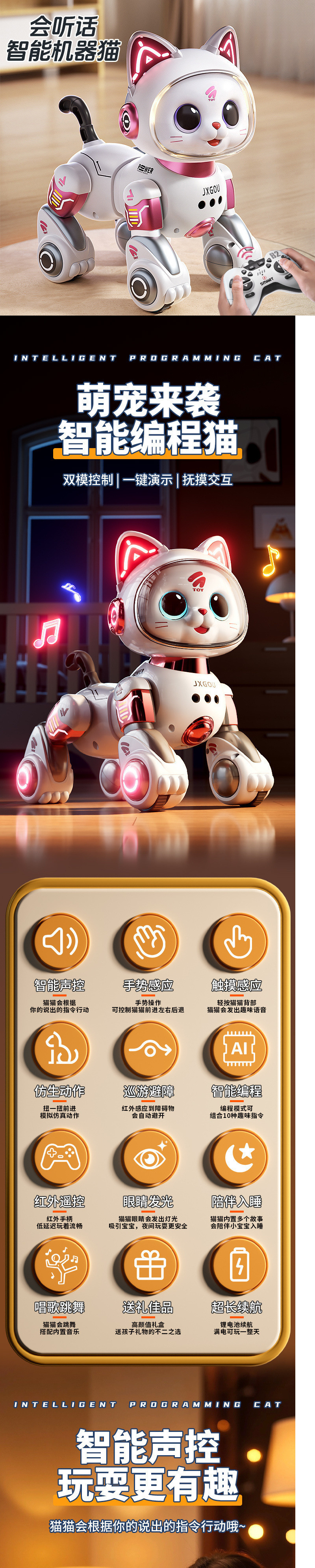 • 핑크 [업그레이드된 제스처 장애물 회피 버전] 우주 스마트 로봇 고양이