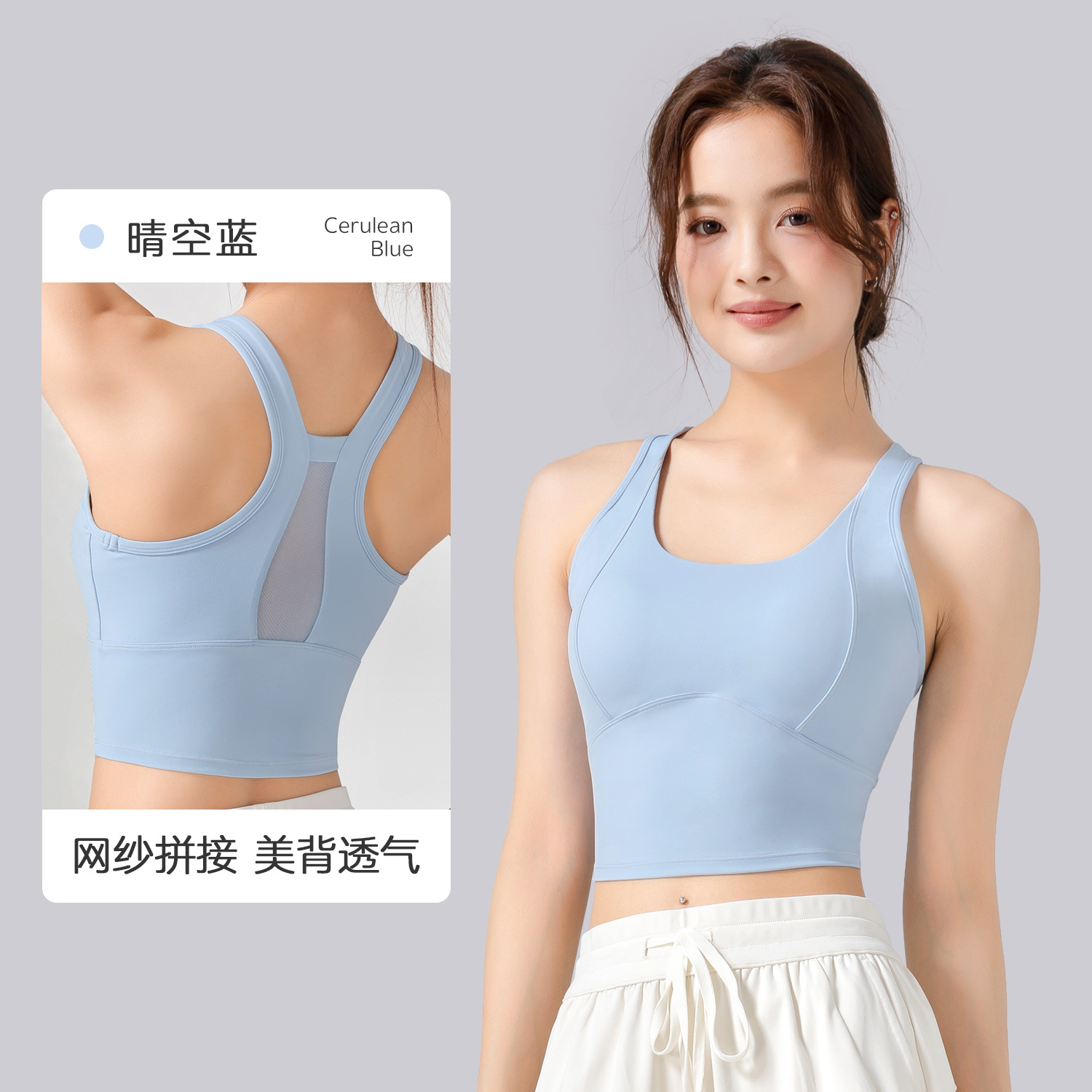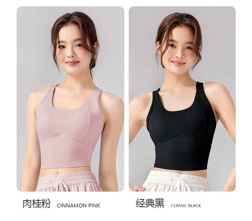 여성용 고강도 스포츠 브라, 피트니스, 충격 방지, 고정 컵, 누드 느낌, 가슴 수축, 스포츠 및 등 미용 요가 조끼 도매