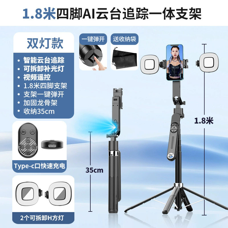 AI人脸识别一键弹开360度旋转云台 智能跟拍手机自拍杆 Q515TK
