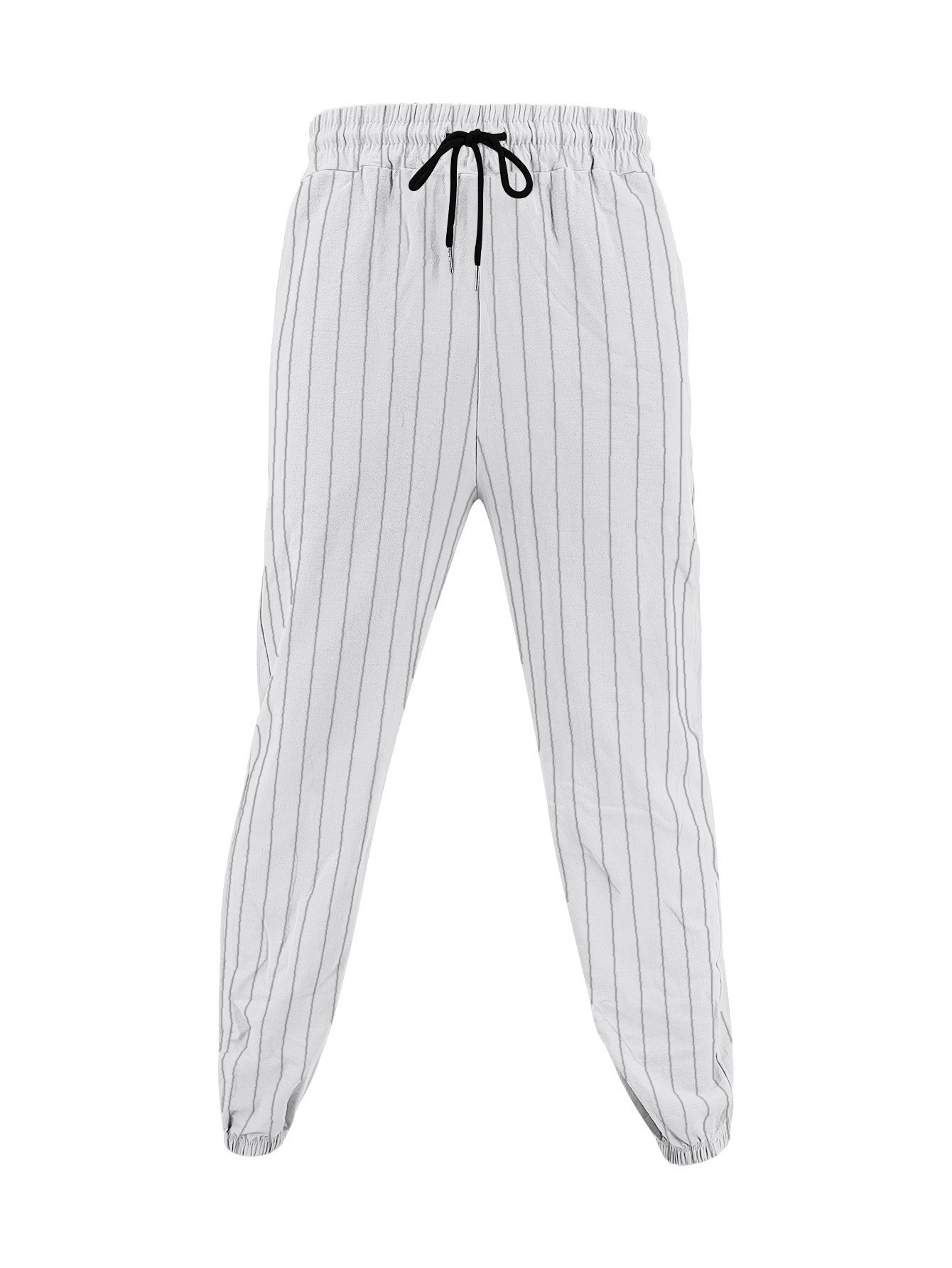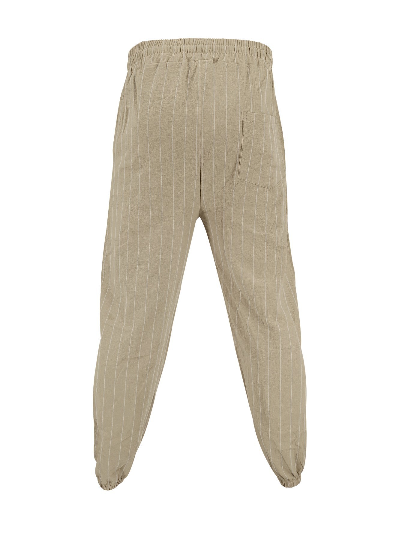 2025 새로운 유럽과 미국의 인기 캐주얼 남성 심플하고 다재다능한 스트라이프 린넨 루즈하고 통기성이 뛰어나고 패셔너블한 스포츠 바지스토어 가기