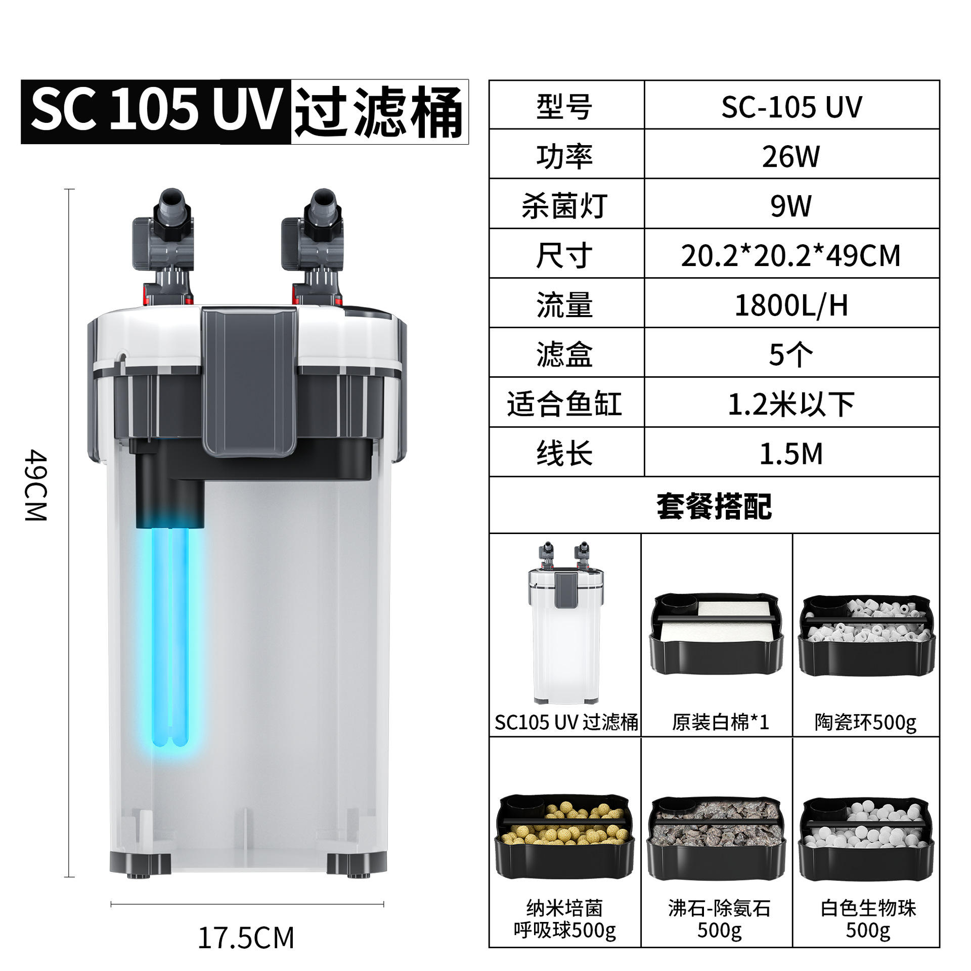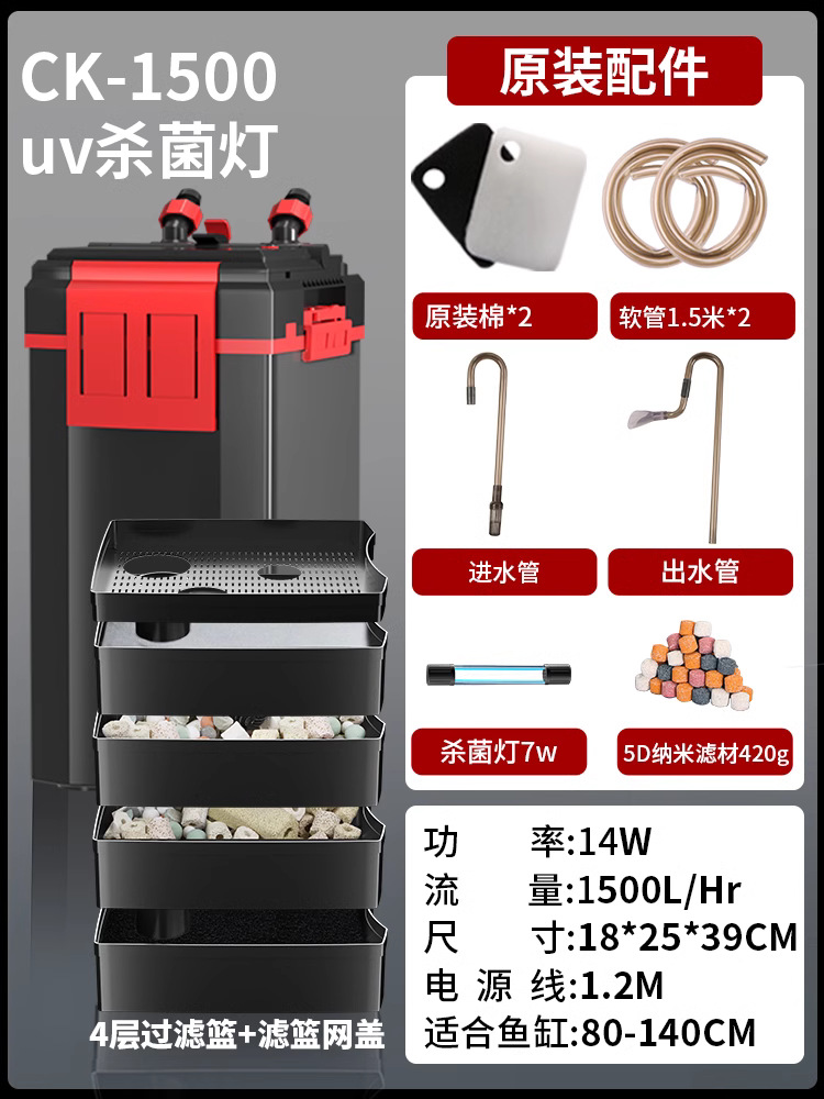 • [UV살균 시리즈] 블랙나이트 CP1500☆베어 배럴에는 필터 재료가 포함되어 있지 않습니다.☆100-130CM 길이의 수조에 적합