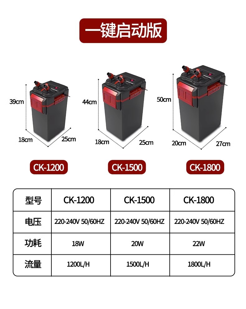 • 3중 여과 기능을 갖춘 15W 살균 모델(0.8m 이하 수조에 적합)