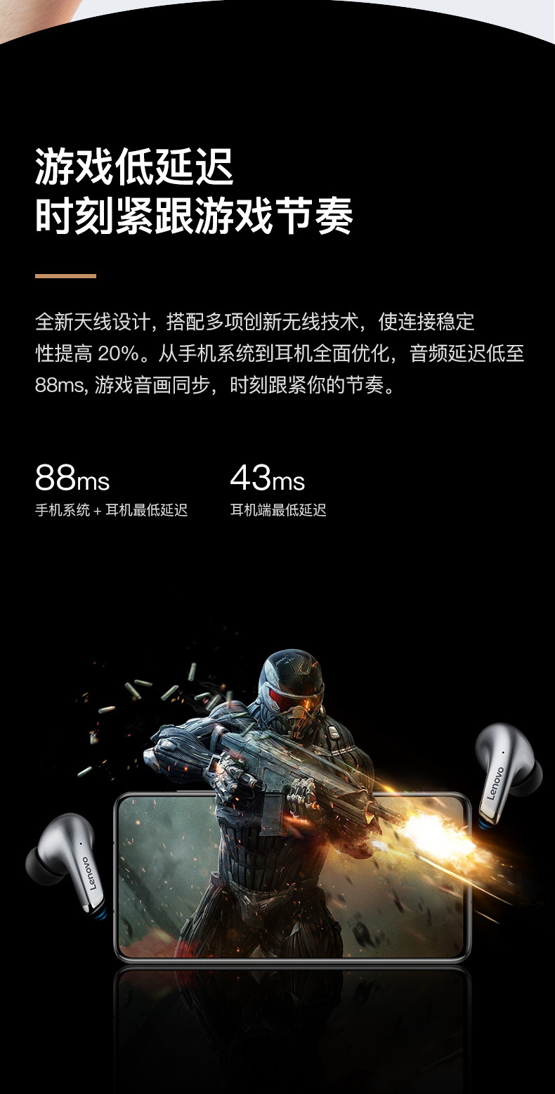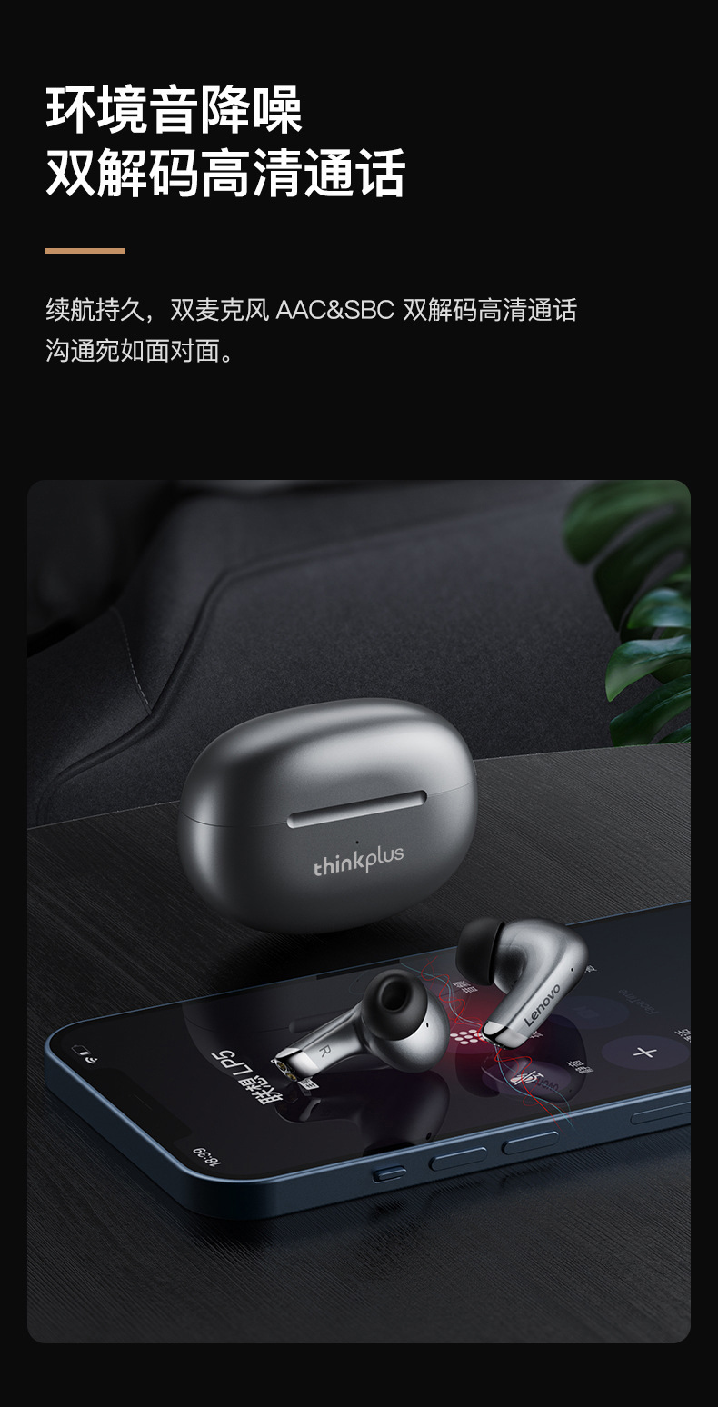 레노버 블루투스 이어폰 인이어 노이즈 캔슬링 게이밍 저지연 스포츠 신형 레노버 LP5 무선 이어폰