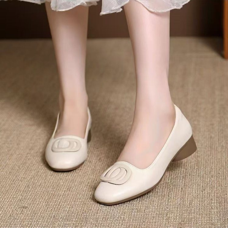 통근 여성화, 인기 부드러운 가죽 스퀘어 슈즈, 2025 여름 신상 얕은 입구 다용도 엄마 신발, 하이힐, 부드러운 밑창 가죽 신발스토어 가기